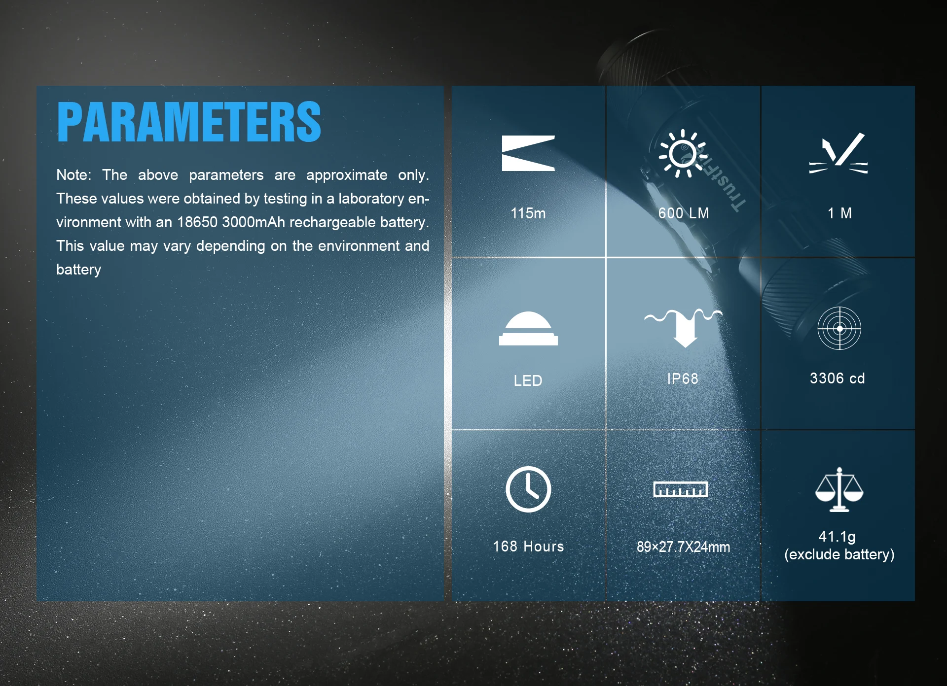 Luz de luna: 10 lúmenes/168 horas/8 metros de alcance del haz