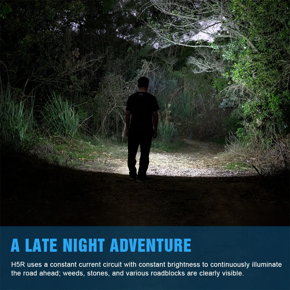 Hecho de aluminio de aviación resistente y fiable, y un diseño ligero de solo 41,1g sin batería, puede hacer frente fácilmente a diversos entornos. H5R es adecuado para correr, escalar, hacer expediciones, senderismo, pescar, acampar y otras actividades nocturnas.