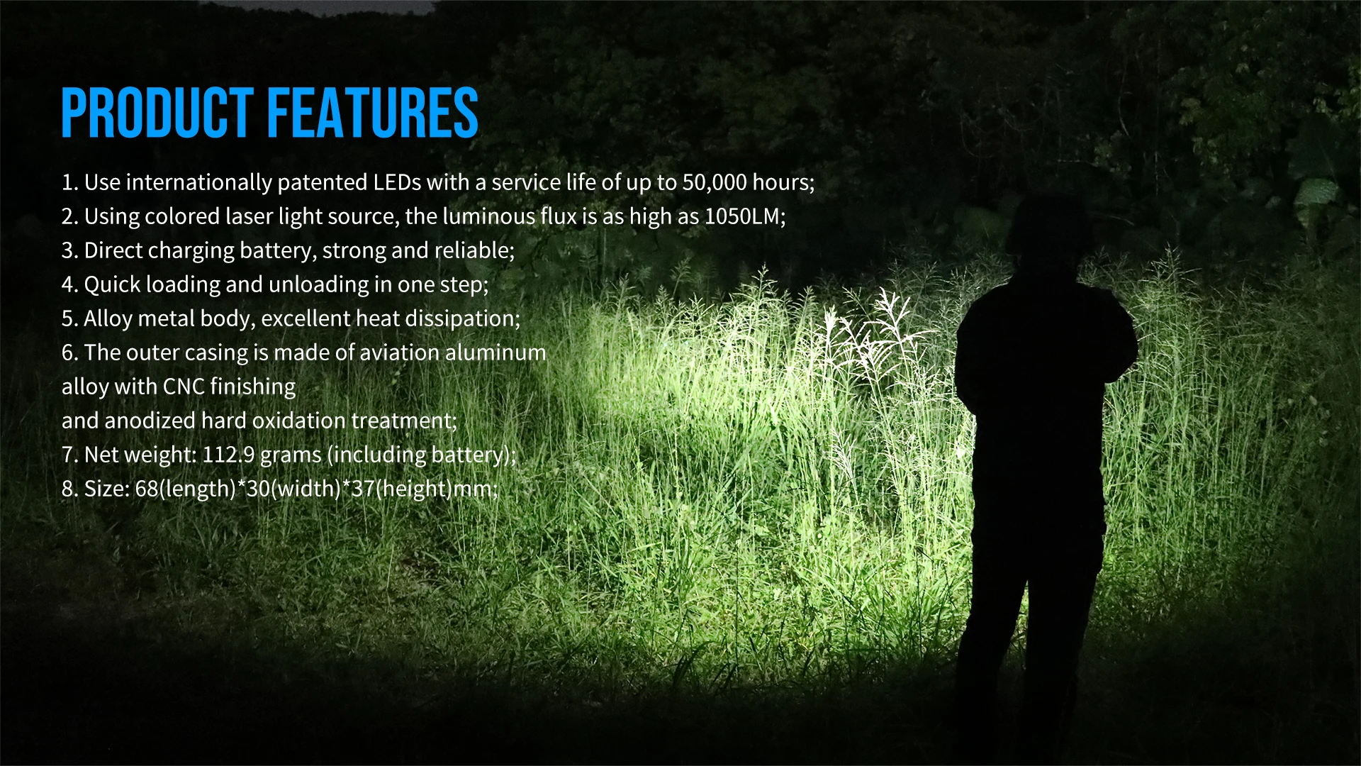 2. Using colored laser light source, the luminous flux is as high as 1050LM;
