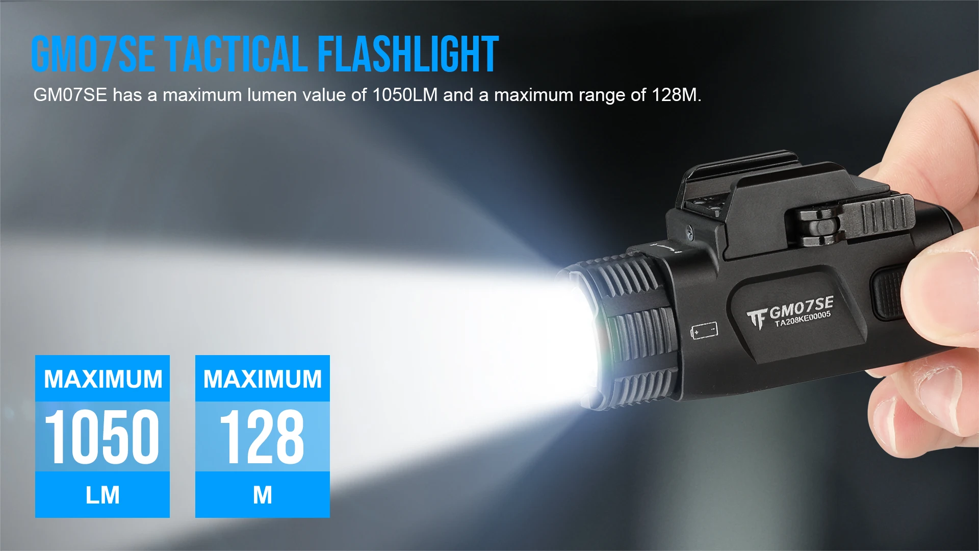 GM07SE has a maximum lumen value of 1050Lumens and a maximum range of 128Meters