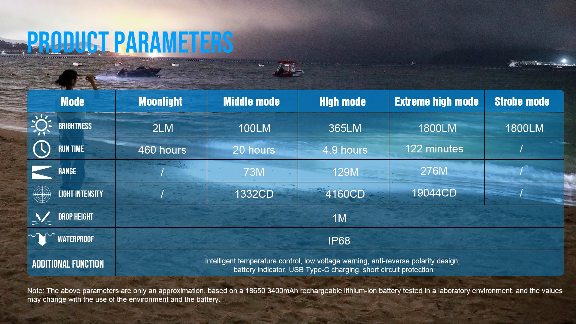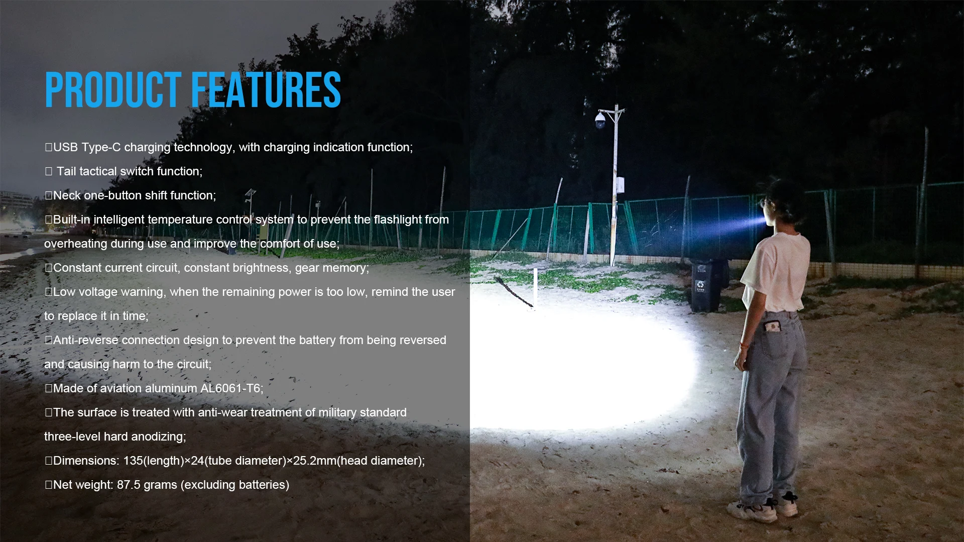 T10R tiene una fiabilidad y operatividad extremadamente altas, hasta 1800 lúmenes, con control inteligente de temperatura y advertencia de bajo voltaje, alimentado por una batería de iones de litio recargable 18650; adoptando la tecnología de carga USB tipo C, nivel IP68 a prueba de polvo e impermeable, se puede utilizar en entornos exteriores complejos y cambiantes; Modo de acceso directo de un botón que cambia en el cuello. El interruptor táctico de cola y la altura anticaída de hasta 1 metro le permiten usarlo en entornos exteriores y de trabajo con confianza.
