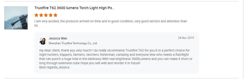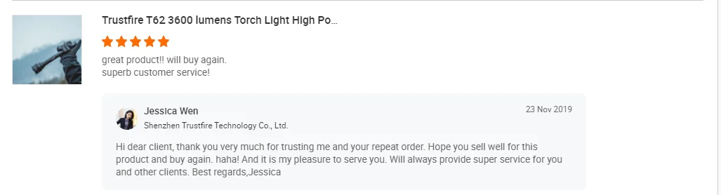 We are orginal TrustFire factory and already service many clients who sell our flashlights in Amazon,Ebay,Lazada,Aliexpress,Supermarket ,retail stores and so on.