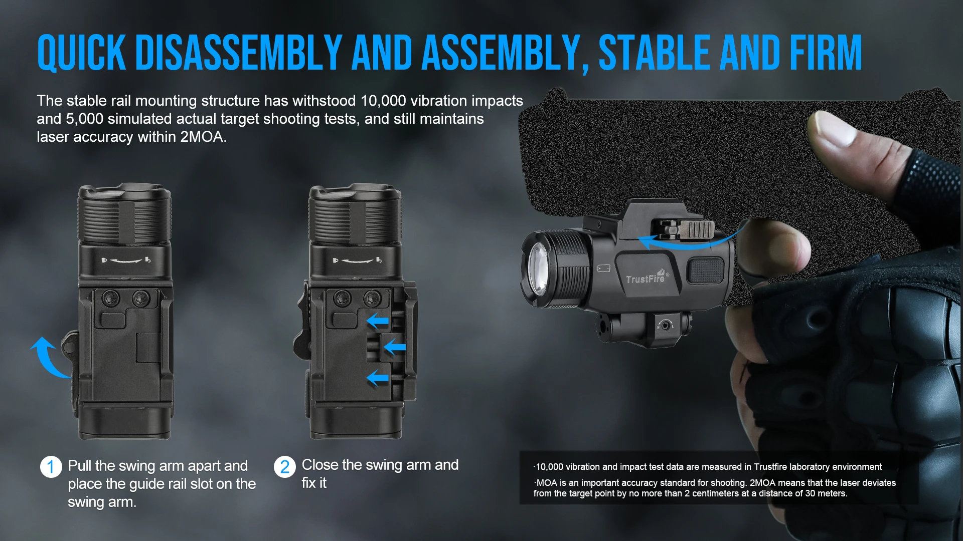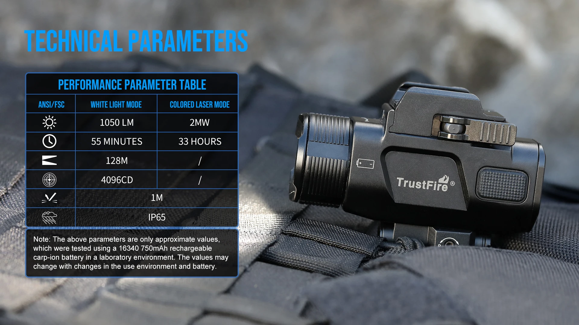 Trustfire GM07 Linternas L-aser de colores 1050Lumen Liberación rápida 2 modos 16340 IP65 para uso común Arma Pistola Antorcha táctica