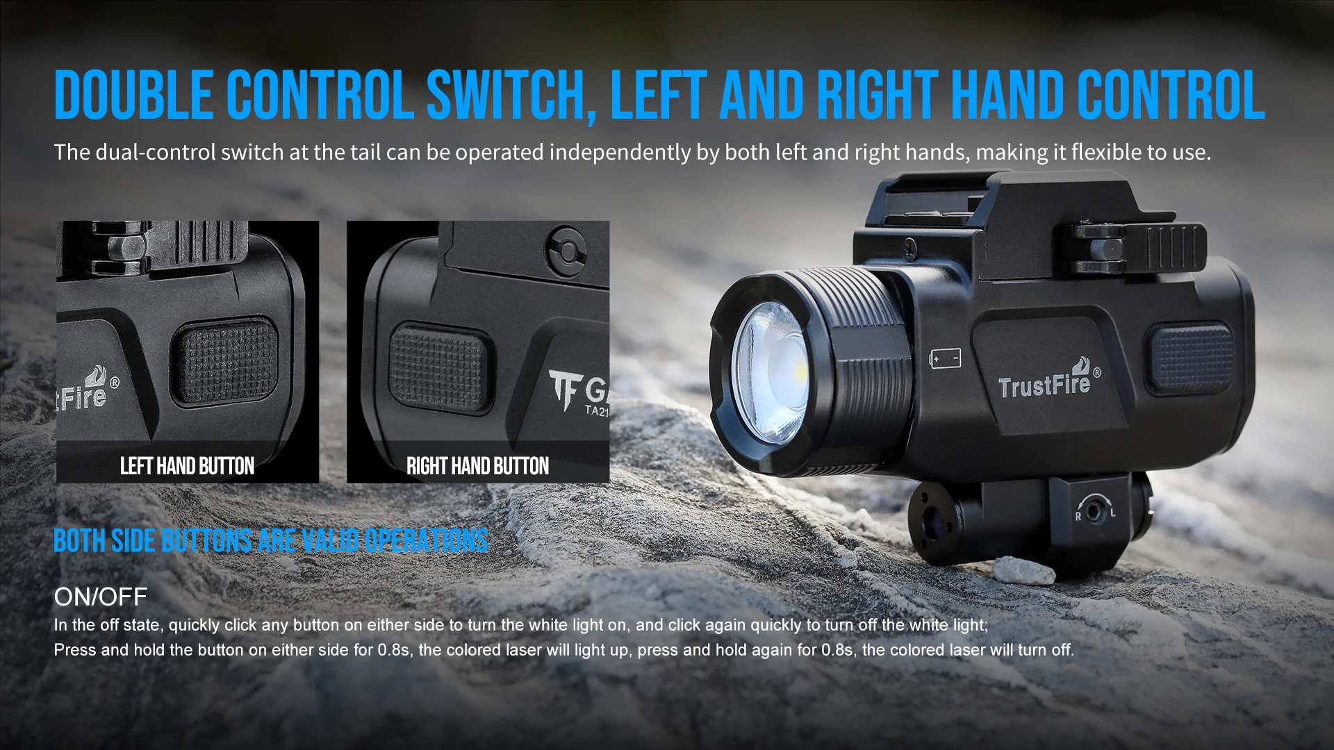 3. Operación de doble botón, luz blanca y láser de color dos modos.