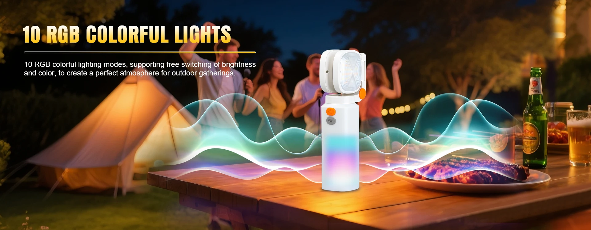 10 LUCES COLORIDAS RGB- 10 modos de iluminación coloridos RGB, que admiten cambio libre de brillo y color, para crear una atmósfera perfecta para reuniones al aire libre.