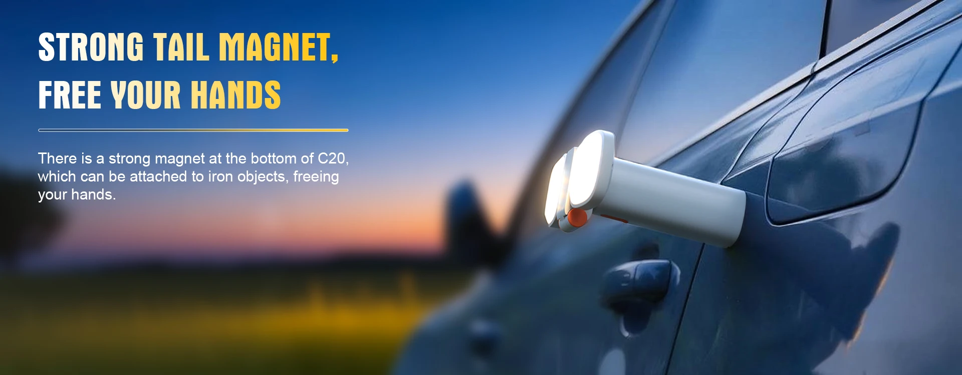IMÁN DE TAIL FUERTE, LIBERE TUS MANOS- Hay un potente imán en la parte inferior de C20, que se puede fijar a objetos de hierro, liberando sus manos.