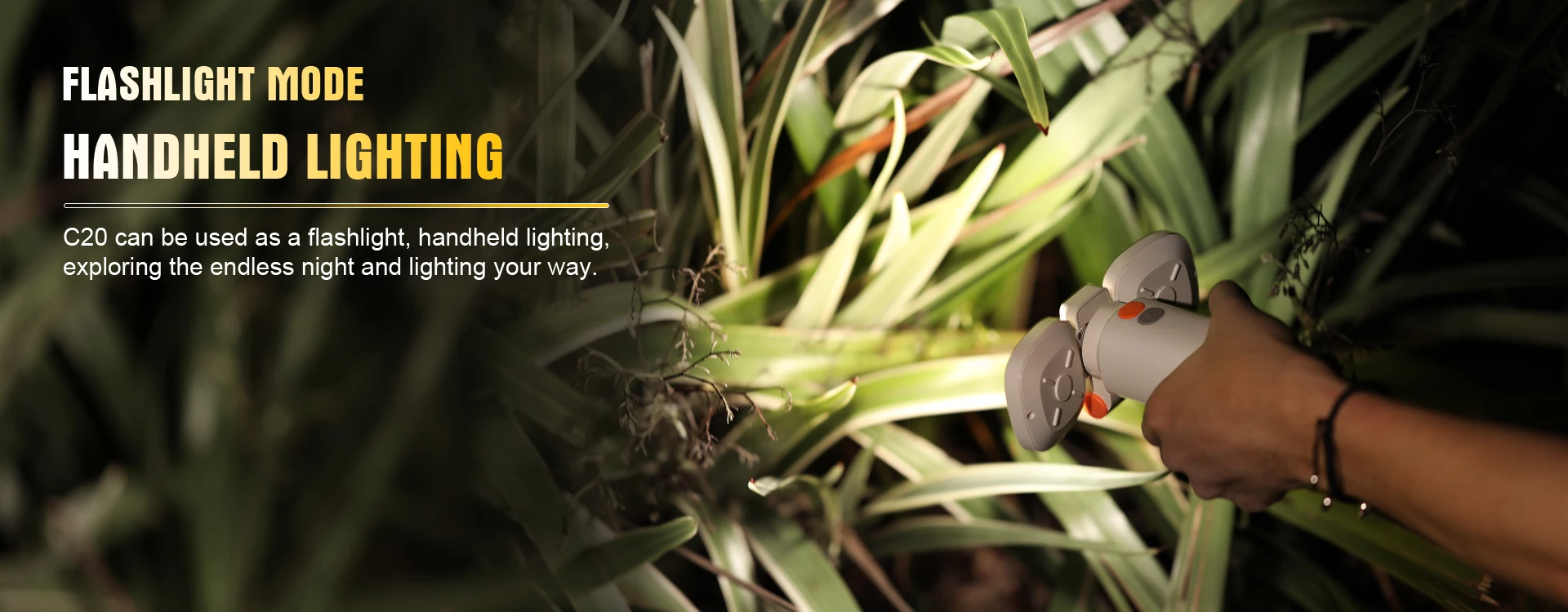 MODO DE LUZ DE LUZ: ILUMINACIÓN MANUAL: C20 se puede usar como linterna, iluminación portátil, explorando la noche sin fin e iluminando su camino.