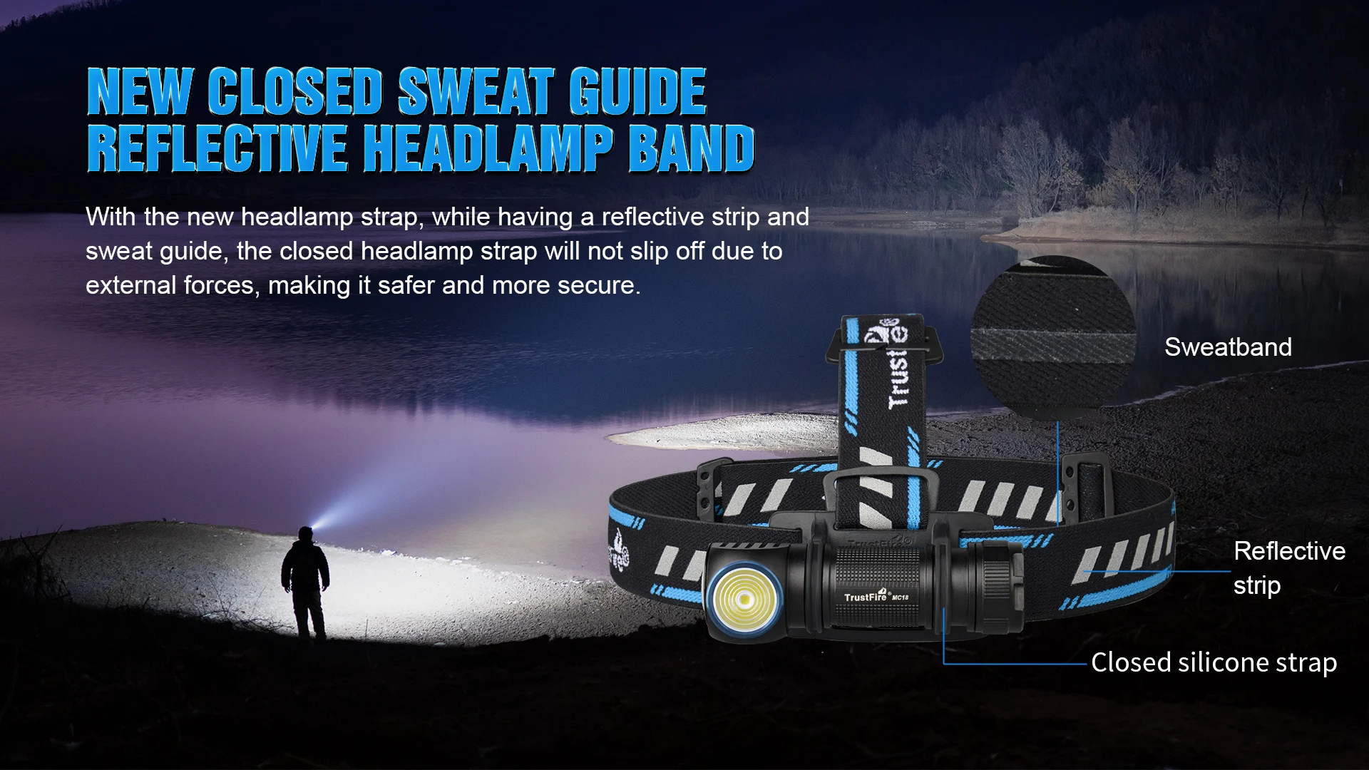 Trustfire MC18 Nueva guía de sudor cerrada/banda de faro reflectante