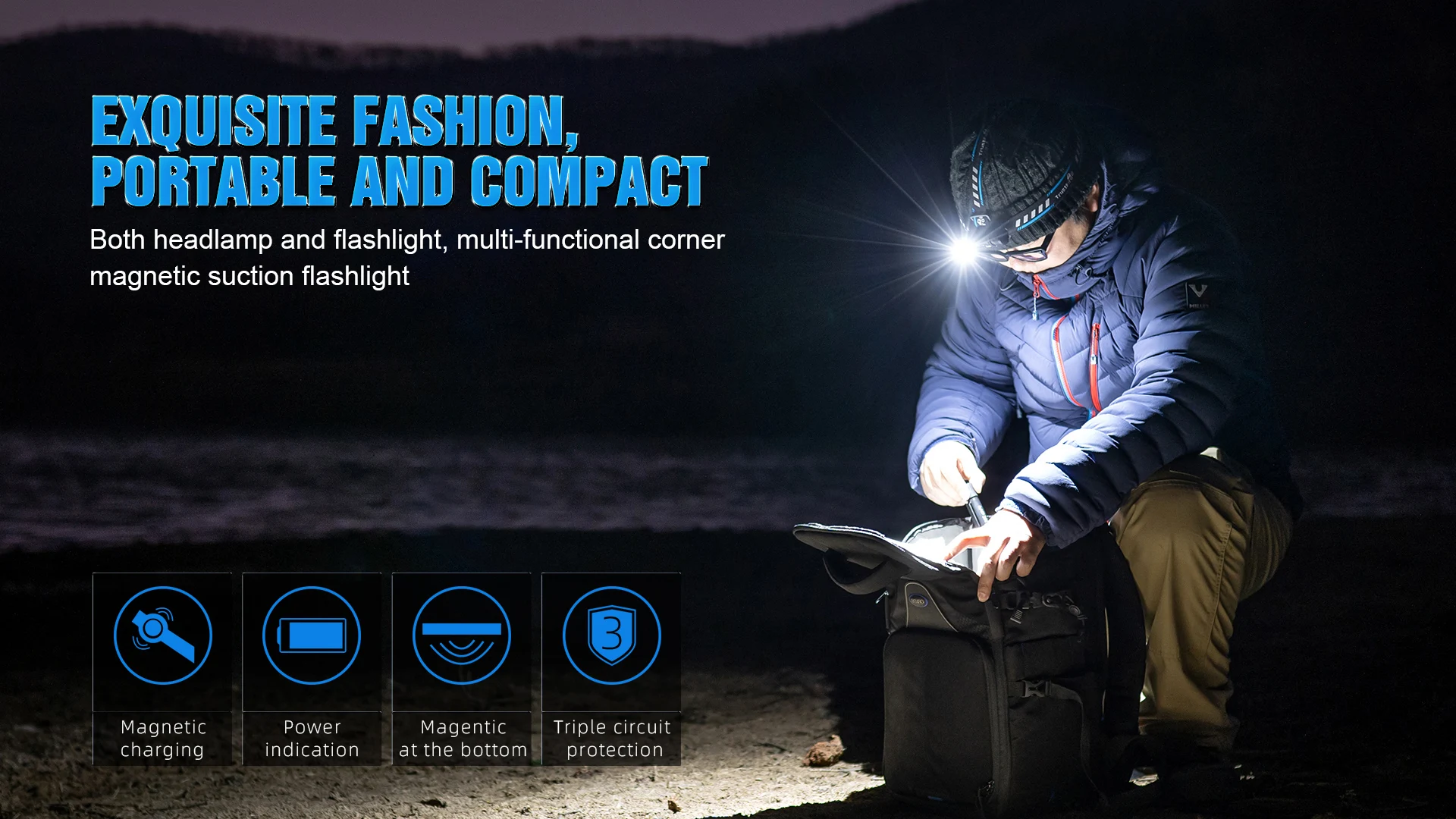 MC18 es una linterna y un faro EDC con carga USB magnética perfecta para un circuito inteligente de doble uso integrado en el interior, corriente constante y brillo constante.con un cable de carga magnético más rápido de 5 V 2 A y se puede cargar directamente con un banco de energía, una computadora, etc.Puedes cargarlo cómodamente.Libera tus manos y aumenta la exploración de la experiencia al aire libre.