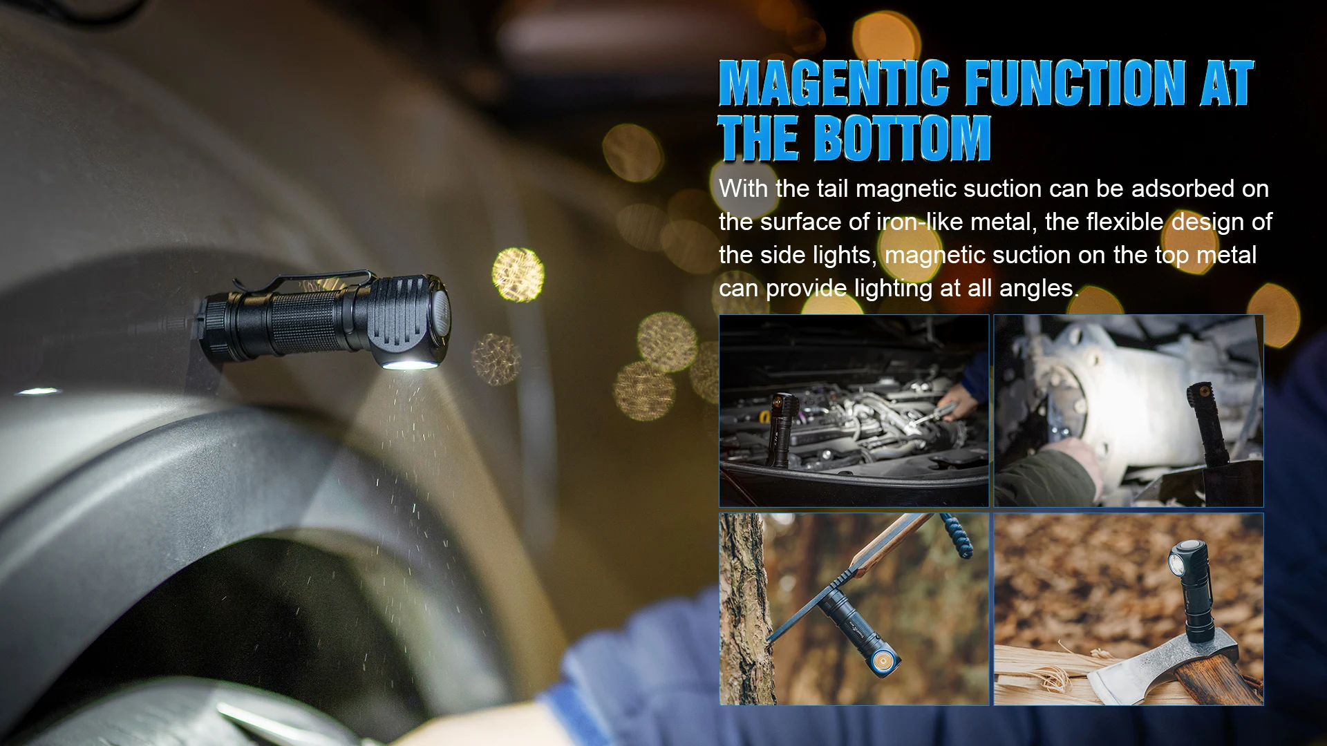 Tanto faro como linterna, linterna de succión magnética de esquina multifuncional