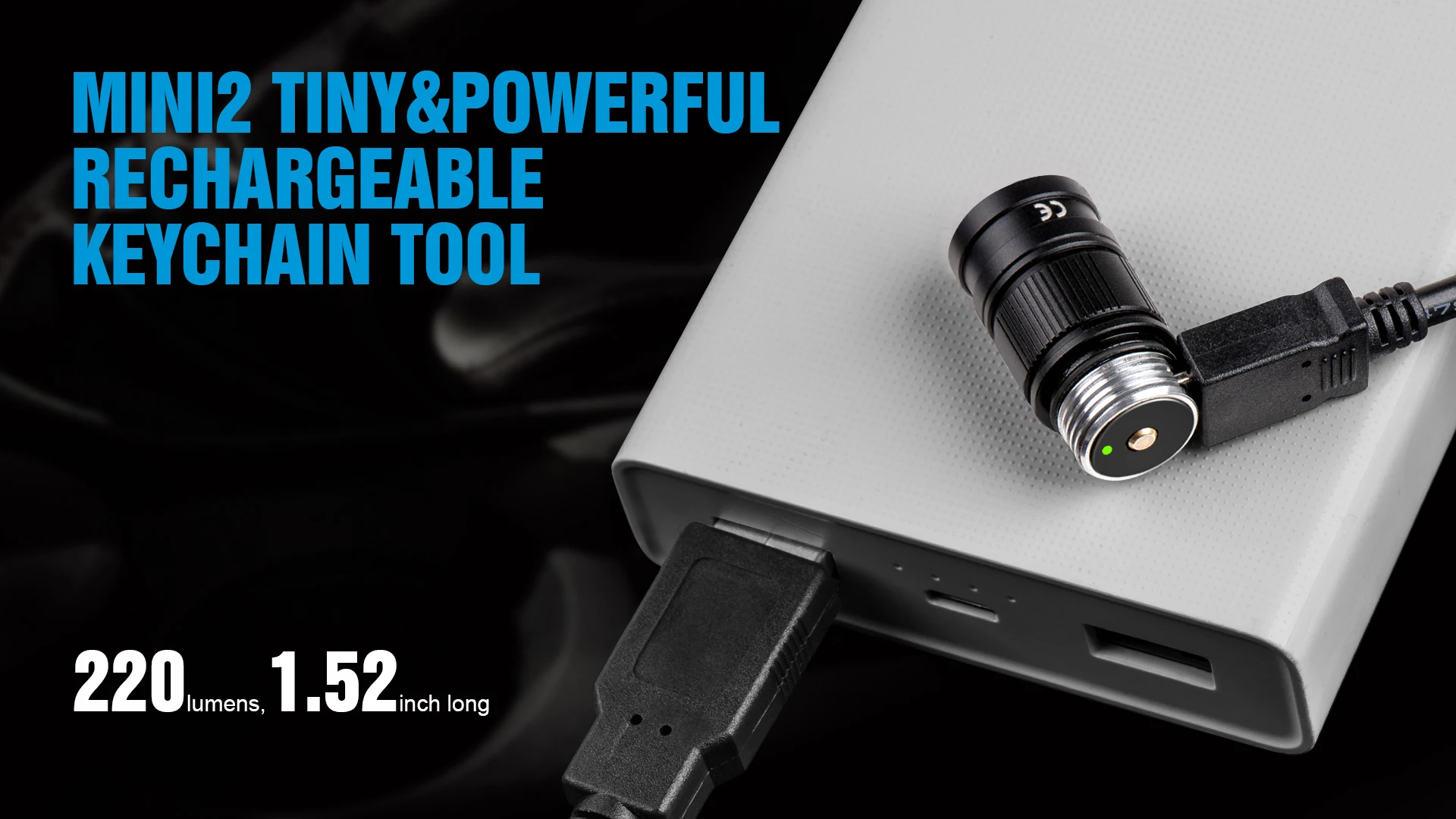 La linterna MINI2 funciona con una batería recargable 10180 incorporada y ofrece un brillo de hasta 220 lúmenes.