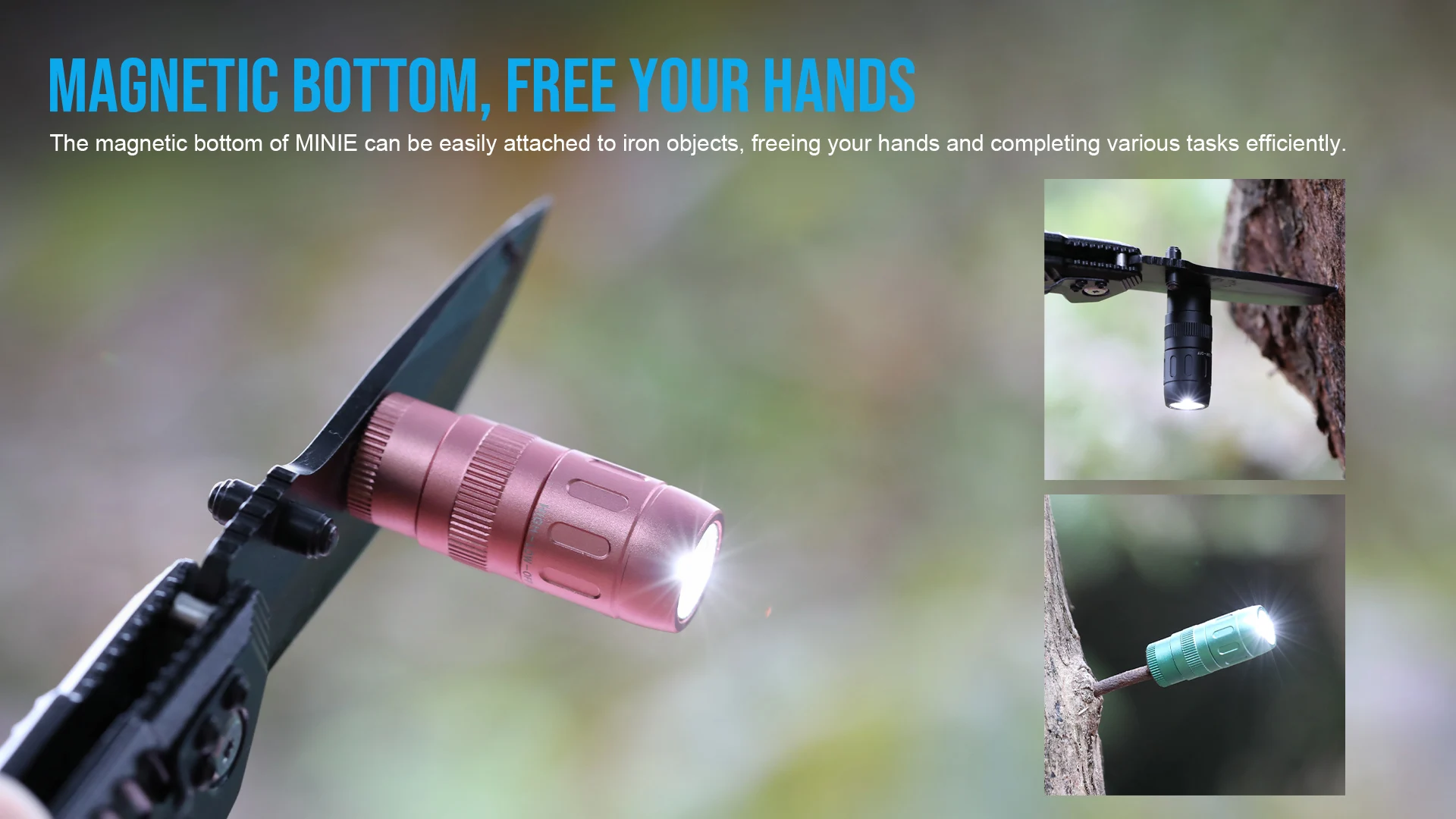 La parte inferior magnética de MINiE se puede fijar fácilmente a objetos de hierro, liberando sus manos y su comodidad.