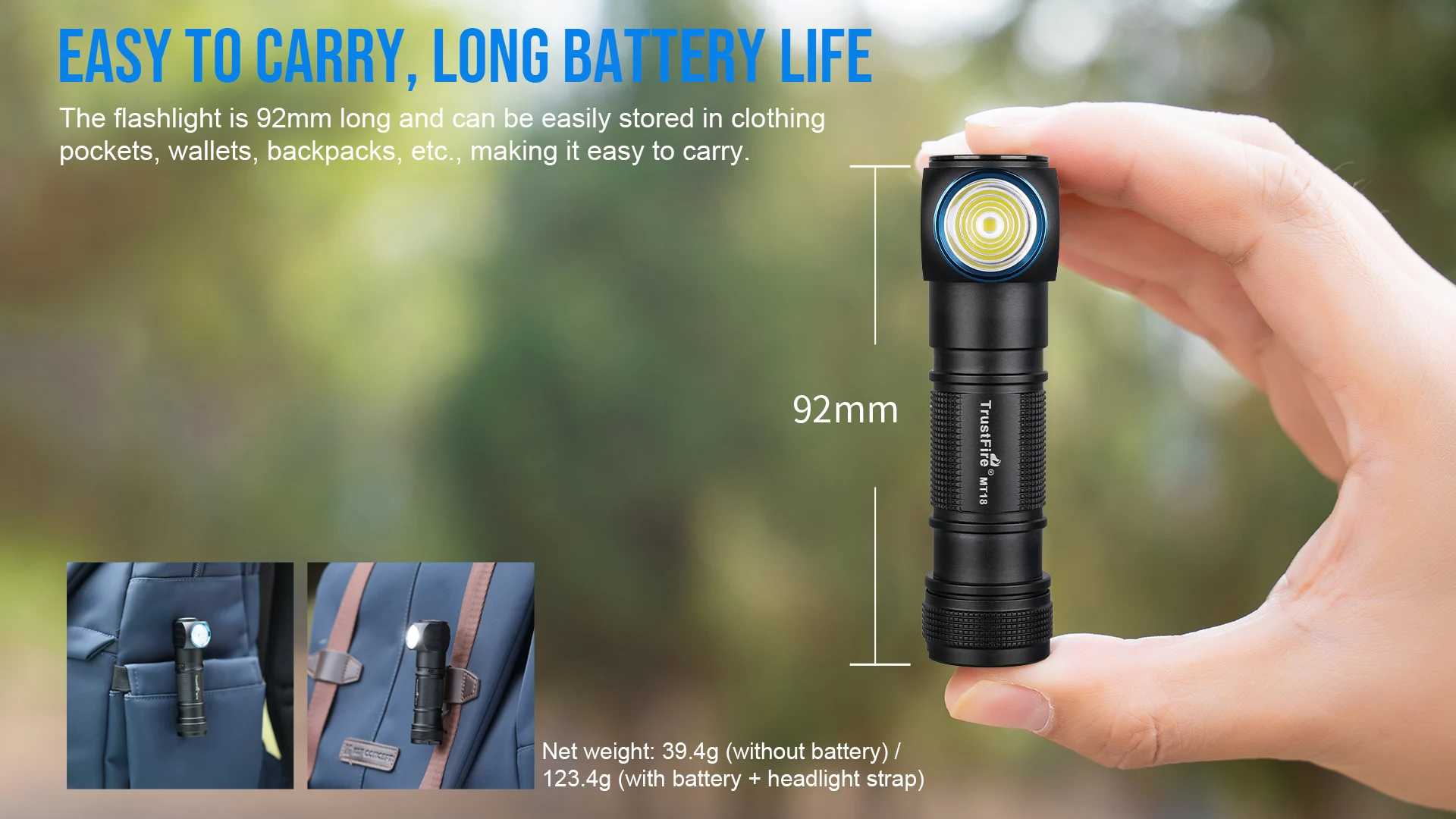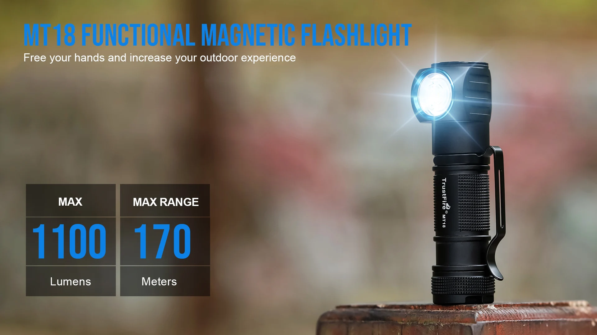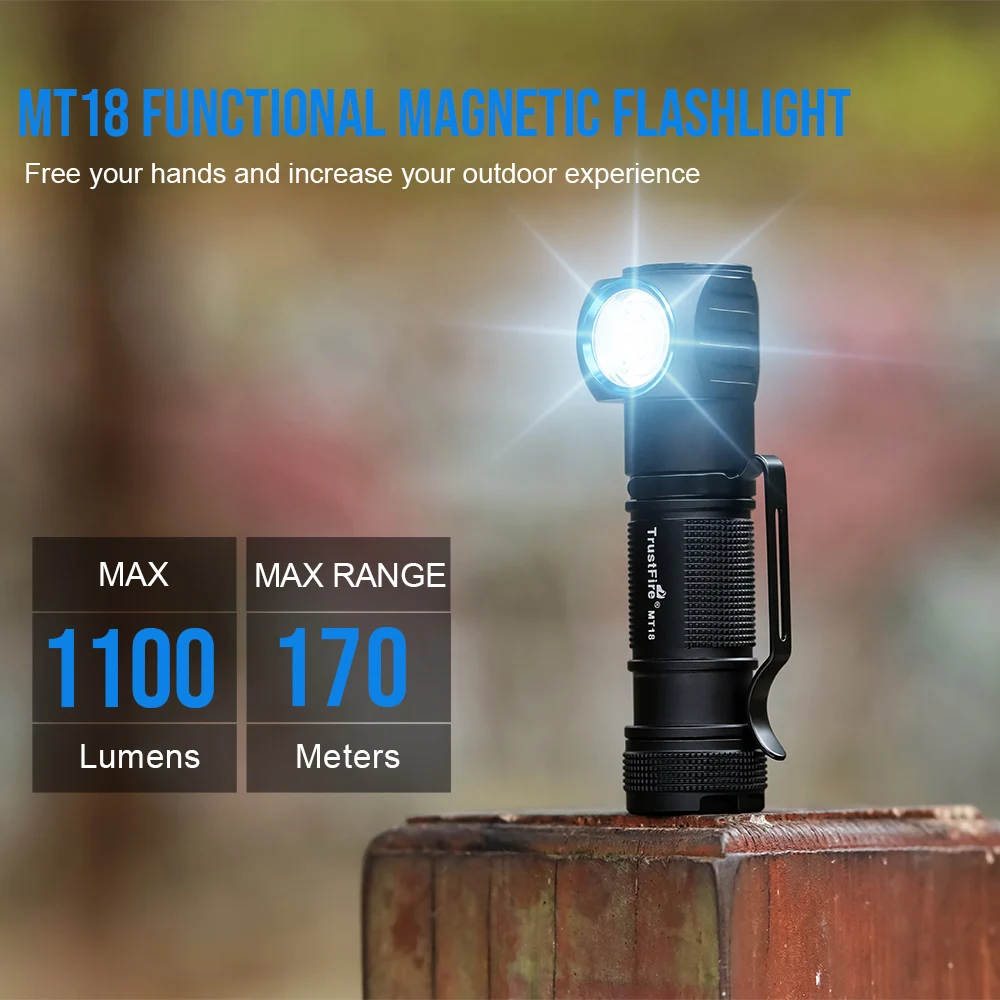 Ilumina tu camino con el potente LED de 1100 lm del Trustfire MT18, que garantiza una iluminación brillante en cualquier situación.