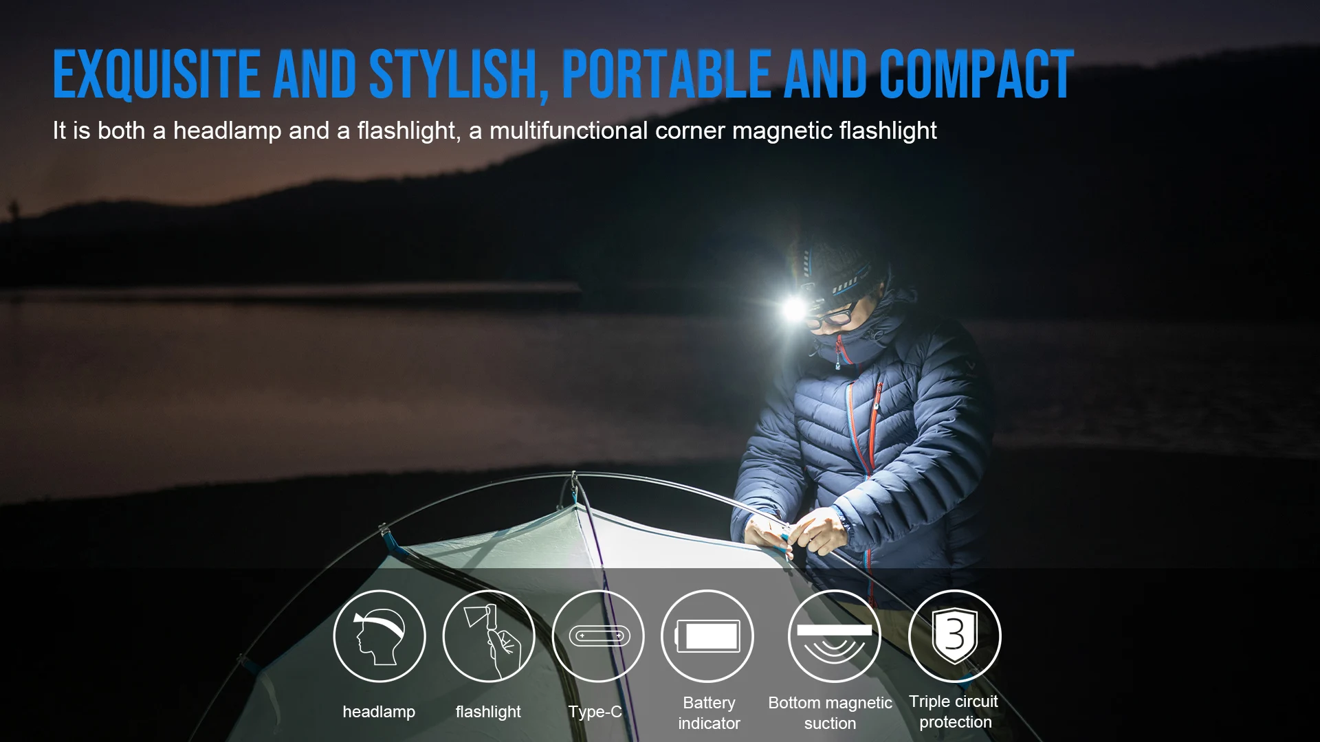 Duradera e impermeable, esta linterna frontal es perfecta para actividades al aire libre en condiciones húmedas sin temor a sufrir daños.