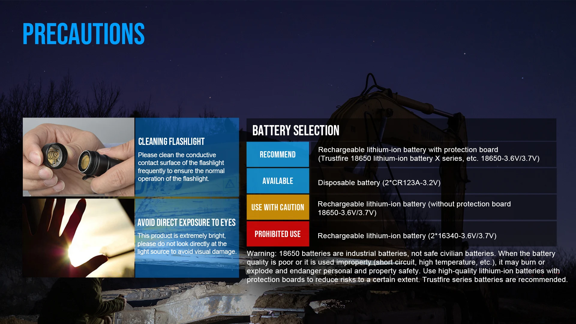 Shenzhen Trustfire Technology Co., Ltd.Creó la marca Trustfire en todo el mundo en 2007.Hemos proporcionado linternas profesionales para alrededor de 2000 200 usuarios en más de 100 países y regiones.
