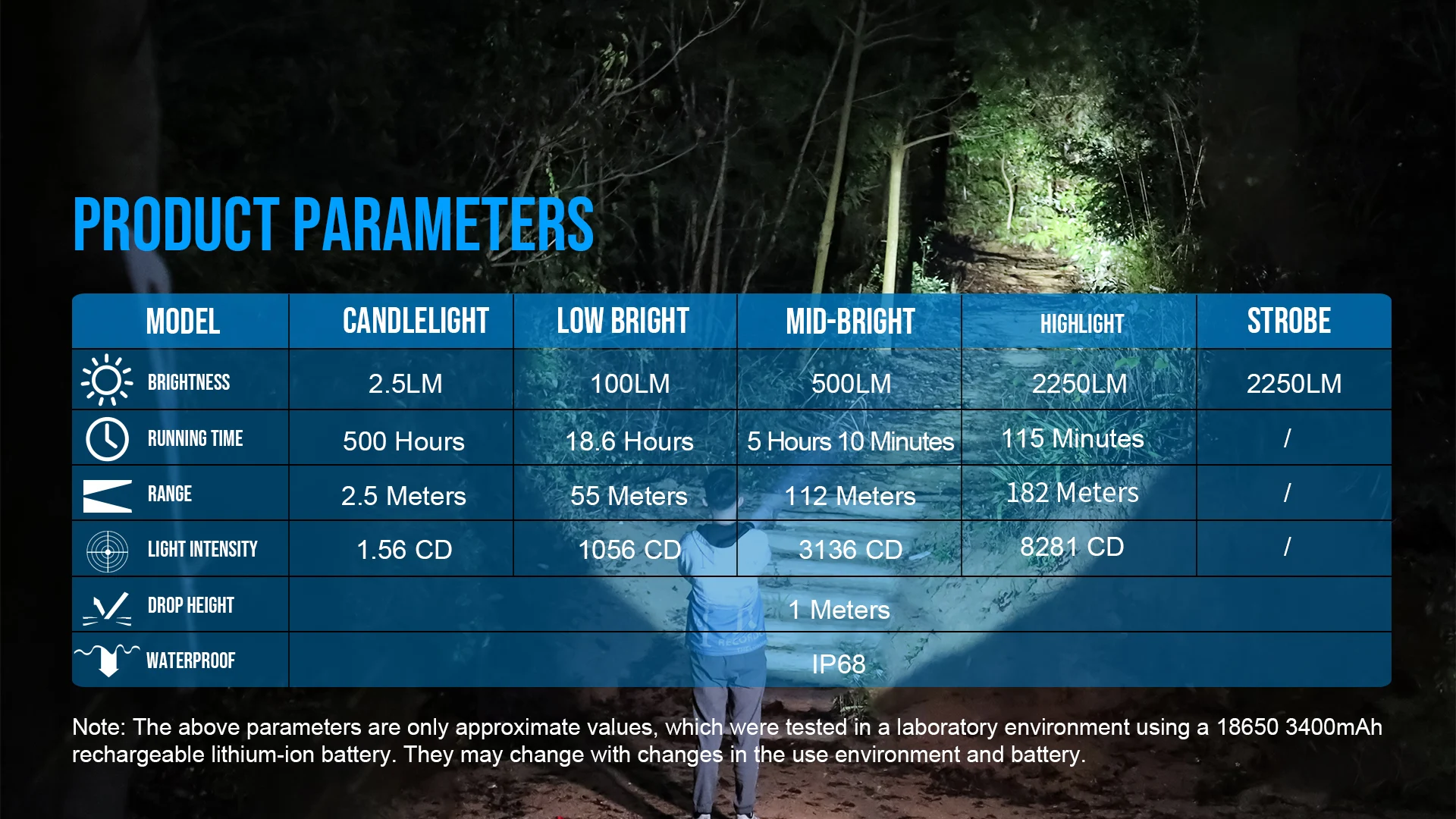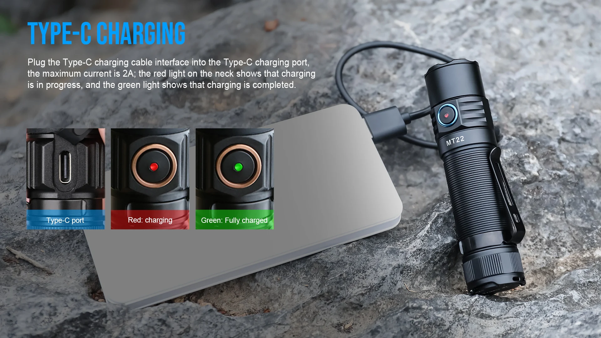 MT22 is equipped with a single Trustfire 18650 battery, which can last up to 500 hours in candlelight mode after fully charged.
