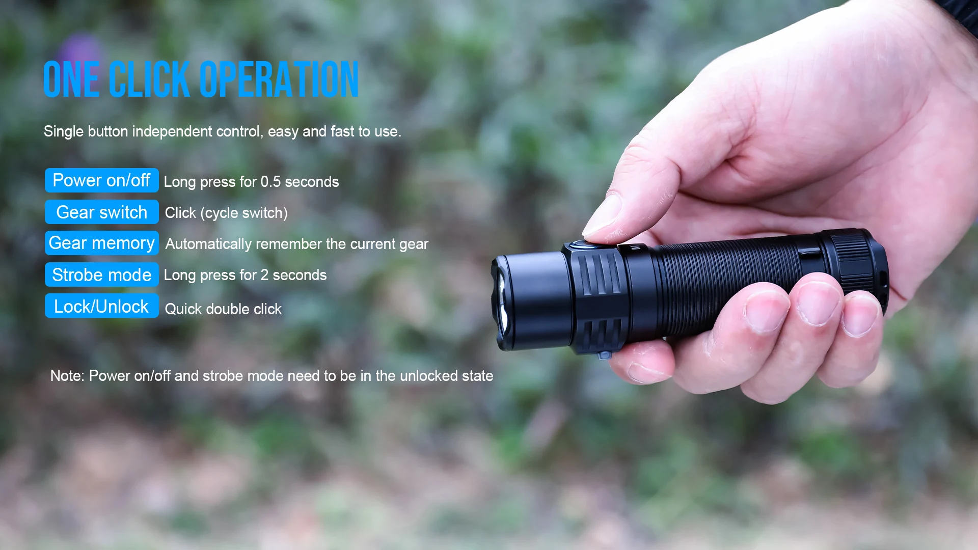 Note: Power on/off and strobe mode need to be in the unlocked state