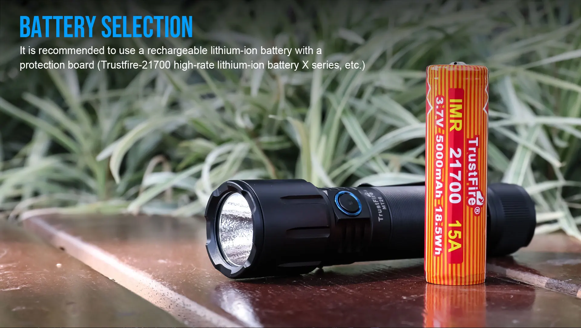 Se recomienda utilizar una batería recargable de iones de litio con una placa de protección (batería de iones de litio de alta velocidad serie X Trustfire-21700, etc.)