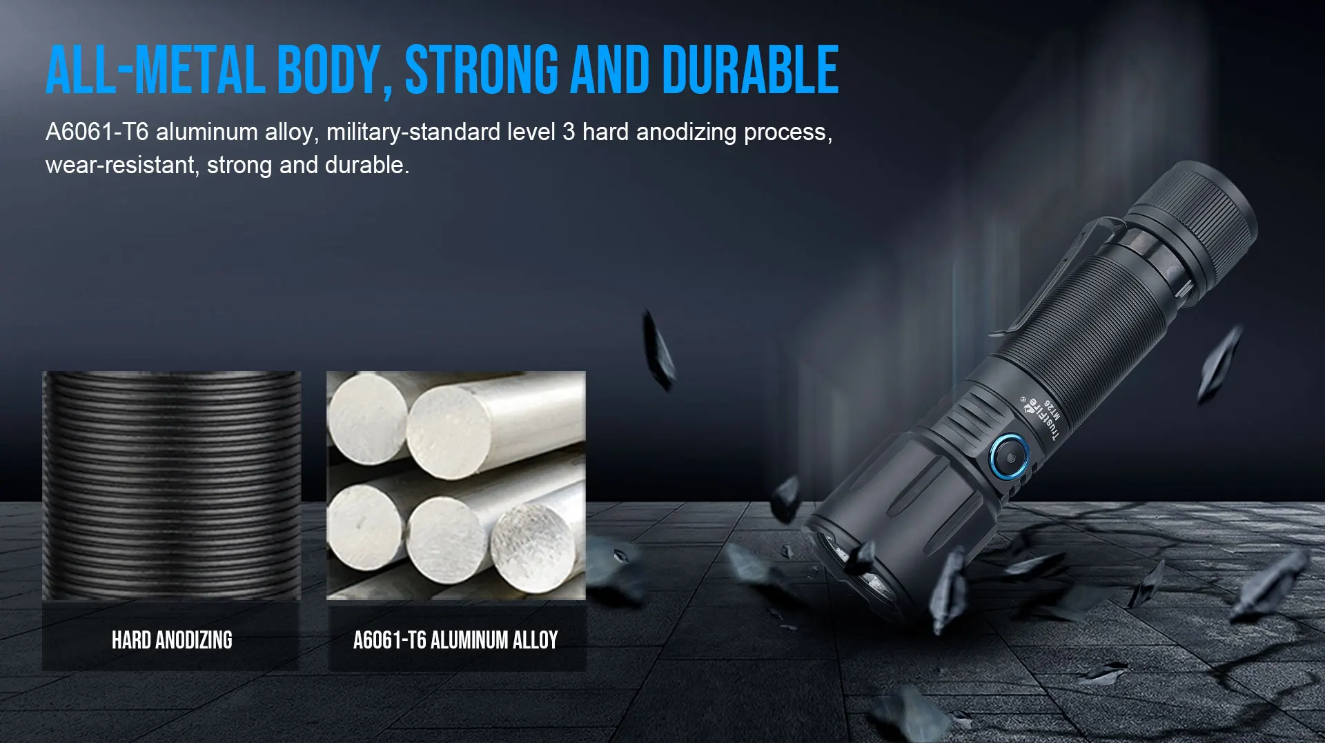 Aleación de aluminio A6061-T6, proceso de anodizado duro de nivel 3 estándar militar, resistente al desgaste, fuerte y duradero.