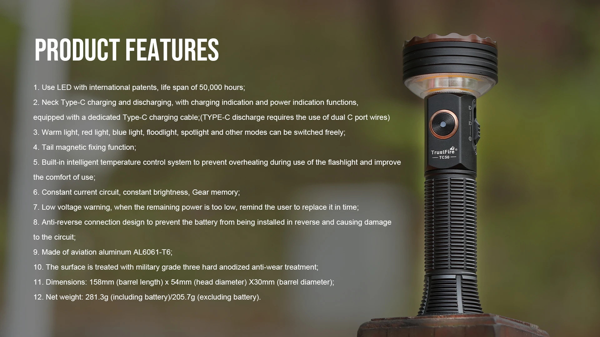 Shenzhen Trustfire Technology Co., Ltd.Creó la marca Trustfire en todo el mundo en 2007.Hemos proporcionado linternas profesionales para alrededor de 2000 200 usuarios en más de 100 países y regiones.