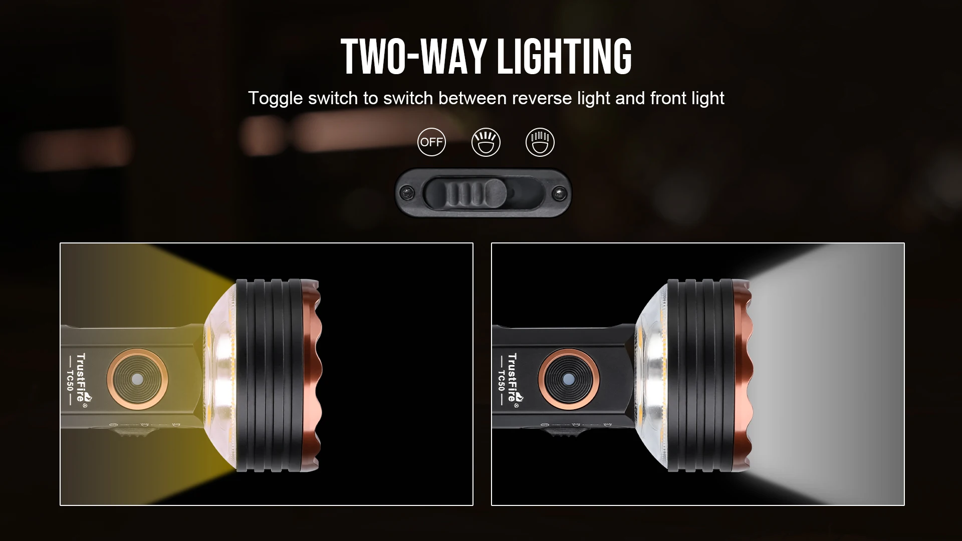Trustfire TC50 5100LM iluminación bidireccional linterna táctica recargable EDC antorcha luces de advertencia humor luz Camping al aire libre