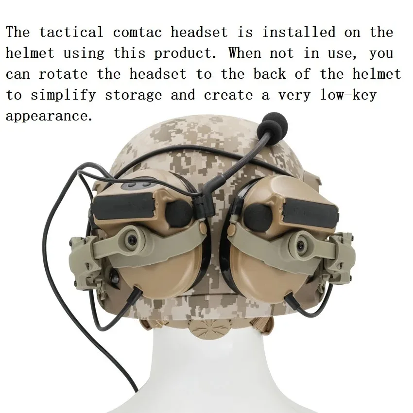 Los auriculares tácticos comta se instalan en el casco utilizando este producto.Cuando no esté en uso, los auriculares se pueden girar hacia la parte posterior del casco, lo que simplifica el método de almacenamiento y crea una apariencia muy discreta.