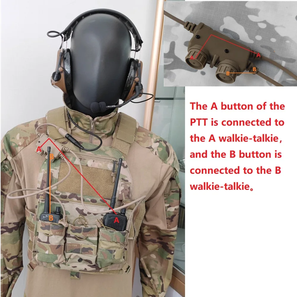 La táctica de comunicación única combinada con este PTT puede comunicarse con dos walkie-talkies.