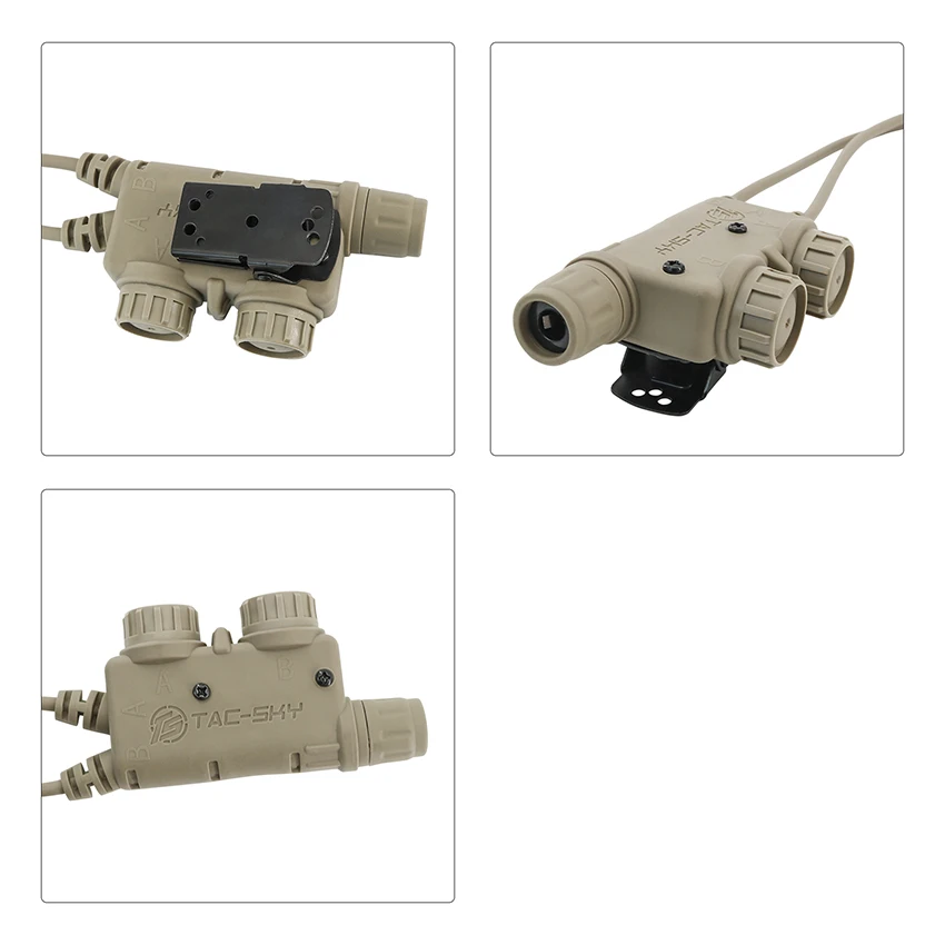 NOTA: Existen dos versiones de este RAC PTT de doble comunicación.La versión civil es compatible con los auriculares tácticos TAC-SKY /Z-TAC/Z.La versión militar es compatible con los auriculares PELTOR MSA.