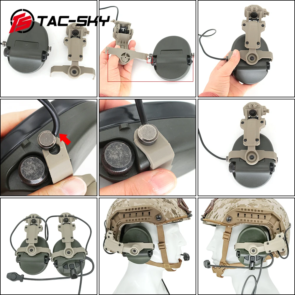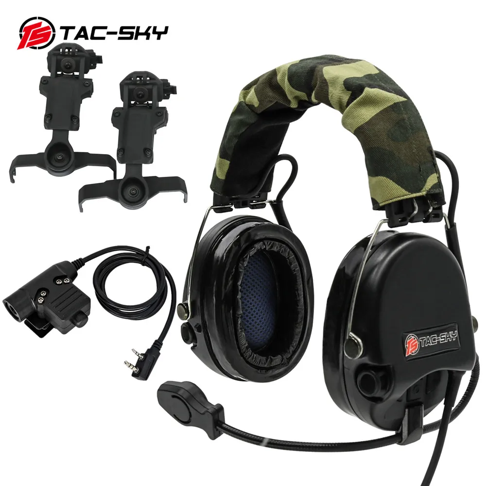 TS TAC-SKY auriculares electrónicos tácticos SORDIN y adaptador de casco con riel de arco y Kenwood Pulg U94 PTT para tiro de caza