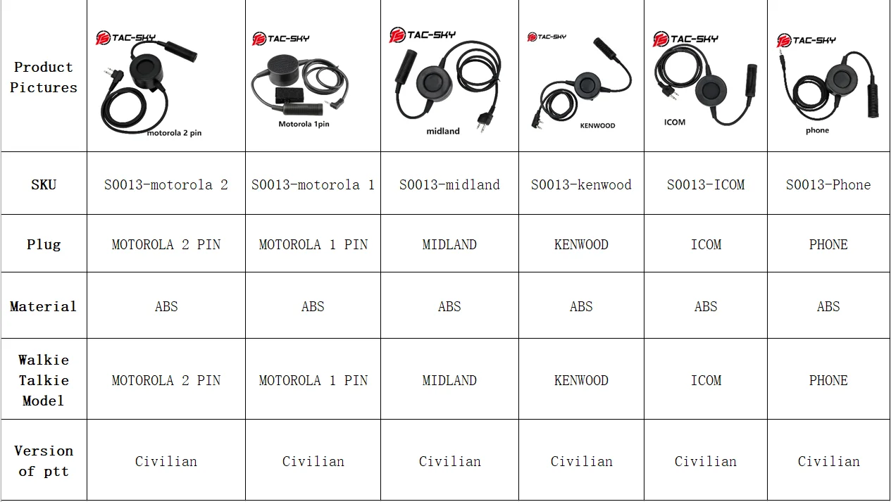 El adaptador TCI PTT es la versión civil y es compatible con la versión civil de los auriculares tácticos.