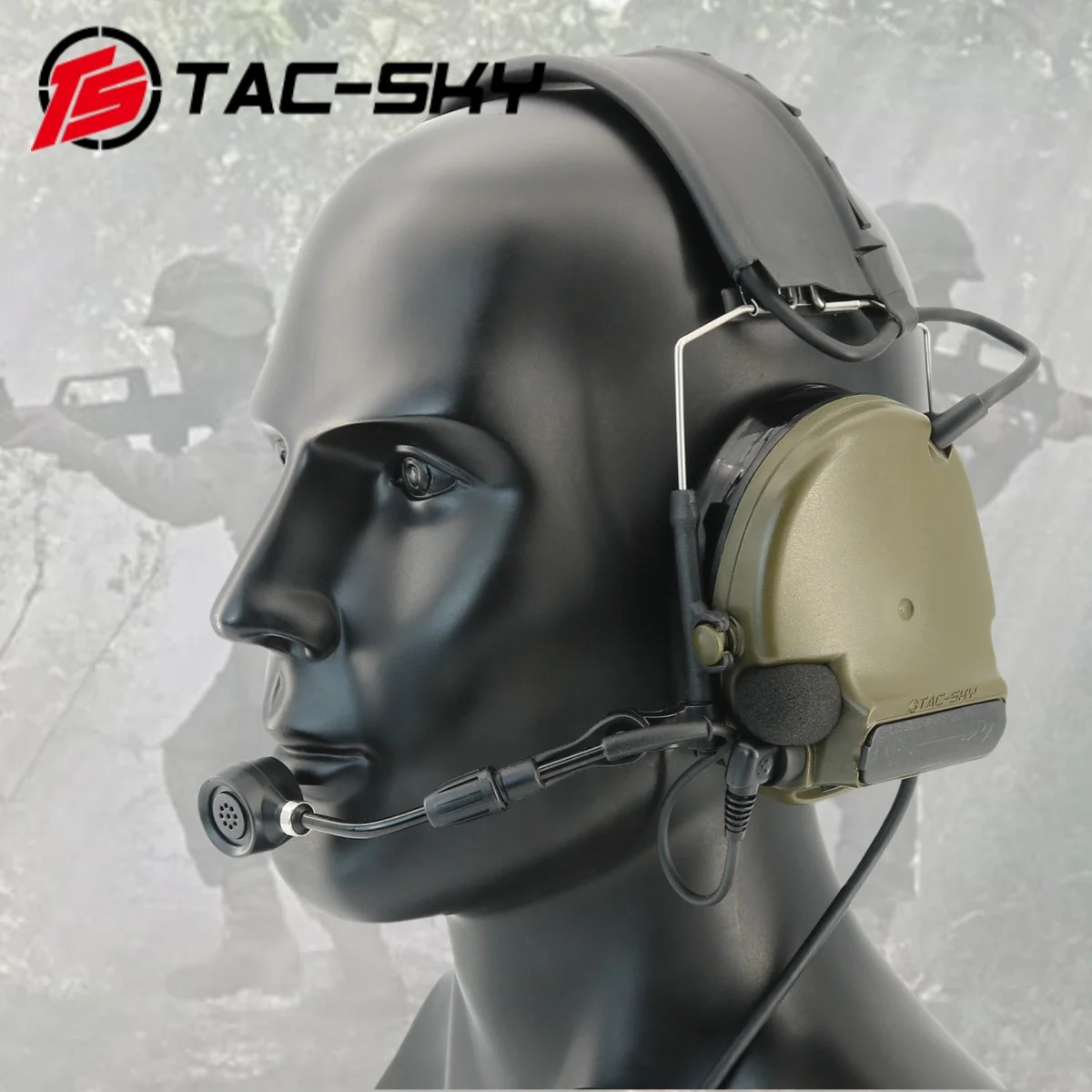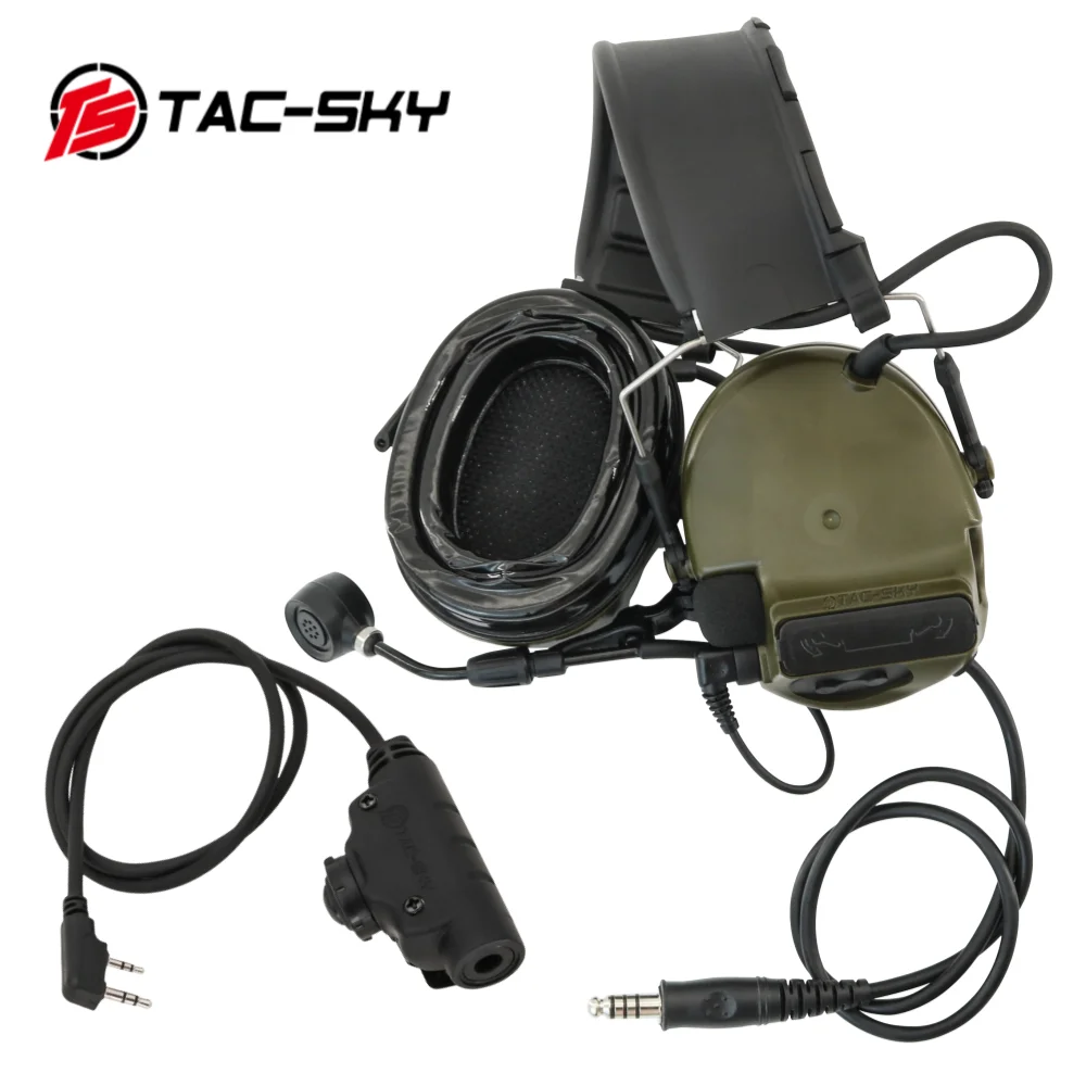 TS TAC-SKY Auriculares tácticos COMTAC V con cancelación de ruido y adaptador táctico V2 PTT Compatible con walkie talkies Kenwood