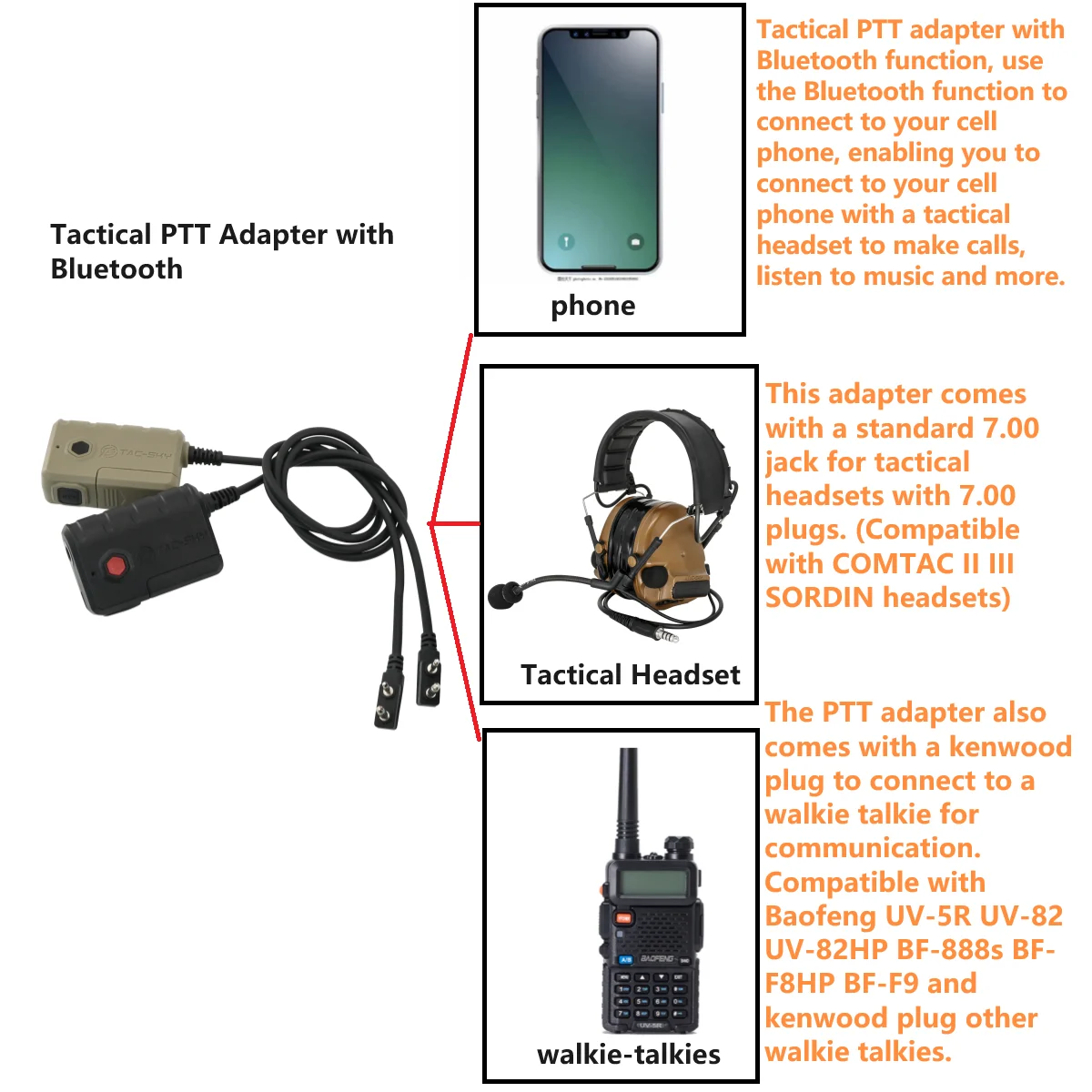 TS TAC-SKY para Baofeng Walkie Talkie accesorio de auriculares tácticos con Bluetooth para auriculares de tiro Comta Sordin