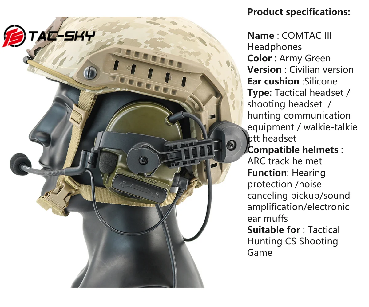 TS TAC-SKY C3 nuevo casco táctico versión de montaje en riel de arco COMTA III captación con cancelación de ruido auriculares de tiro electrónicos