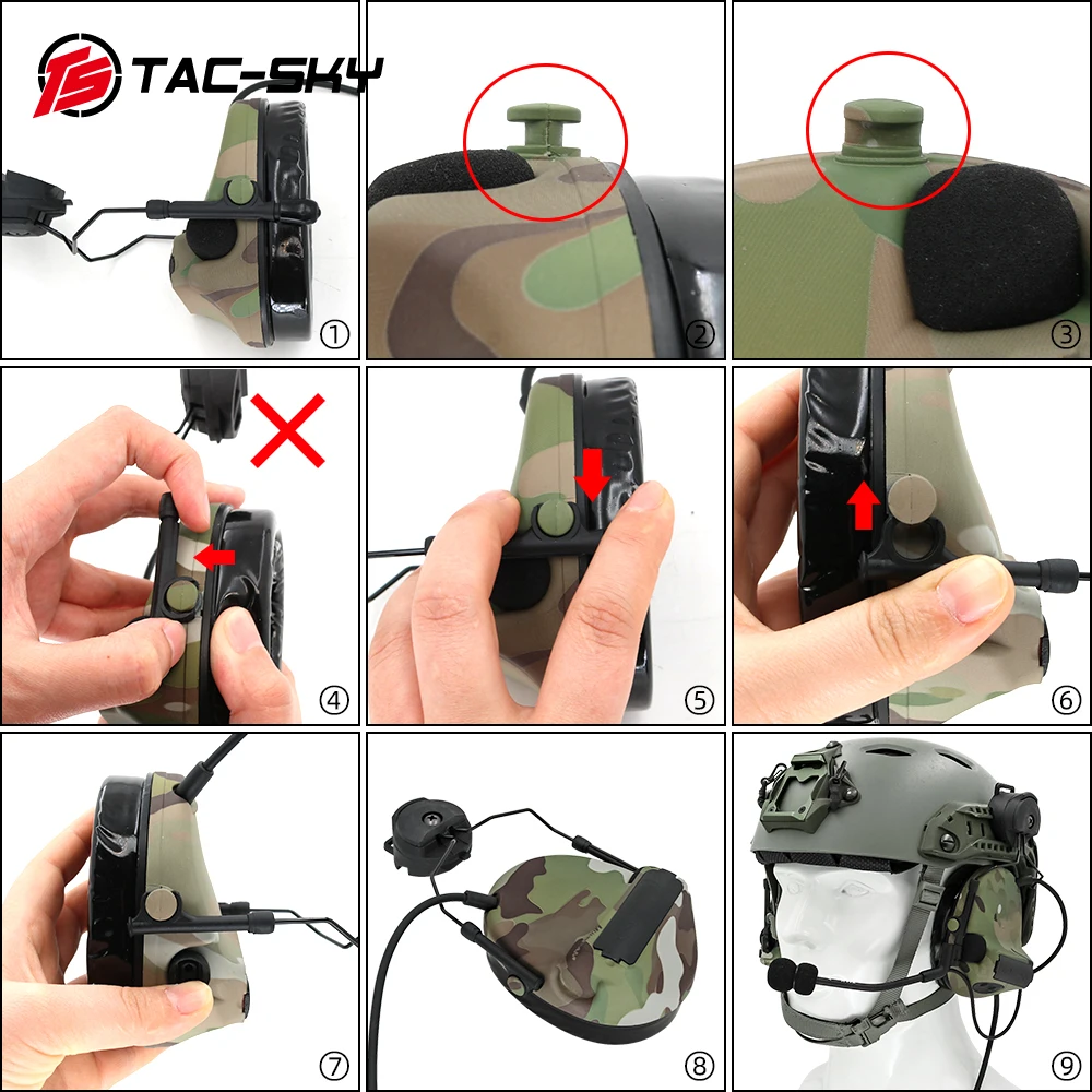 1.Nueva actualización, los auriculares están equipados con una diadema desmontable.Cuando desee convertir los auriculares con diadema en unos auriculares con soporte para casco, solo necesita quitarlos.