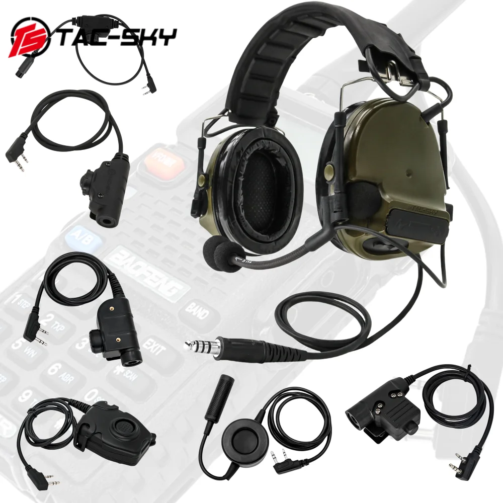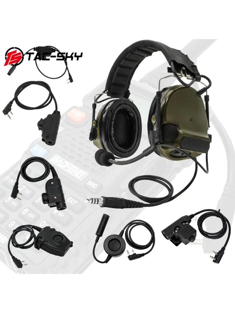 TS TAC-SKY COMTA III Auriculares tácticos c3 con adaptador PTT de enchufe kenwood Compatible con Walkie Talkie Baofeng UV82 UV5R