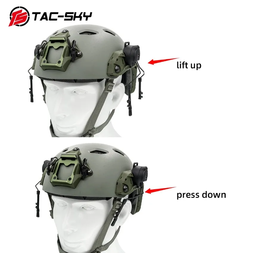 TS TAC-SKY Soporte para auriculares con riel para casco y adaptador de riel para casco con núcleo de acción rápida compatible con casco Pelto ARC OPS-CORE