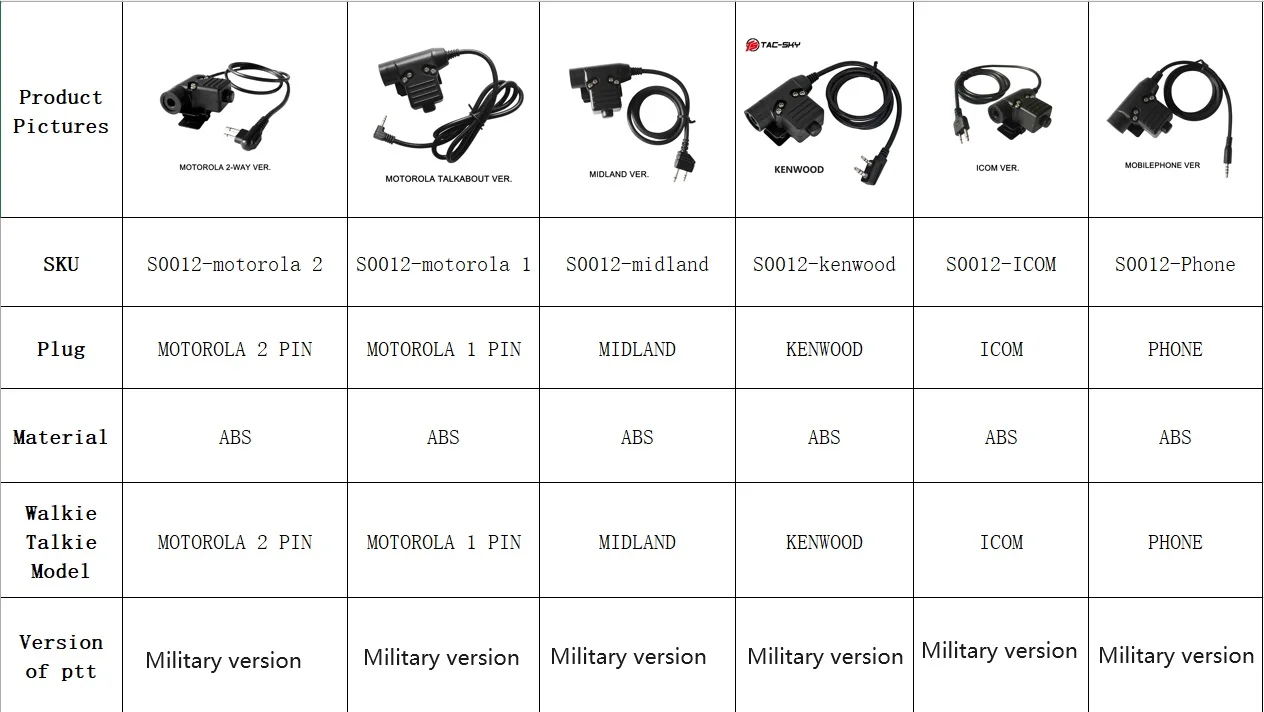 Kenwood/ICOM/teléfono/MIDLAND/Motorola Talkabout 1-pin/Motorola Talkabout 2-pin/1pin Yaesu