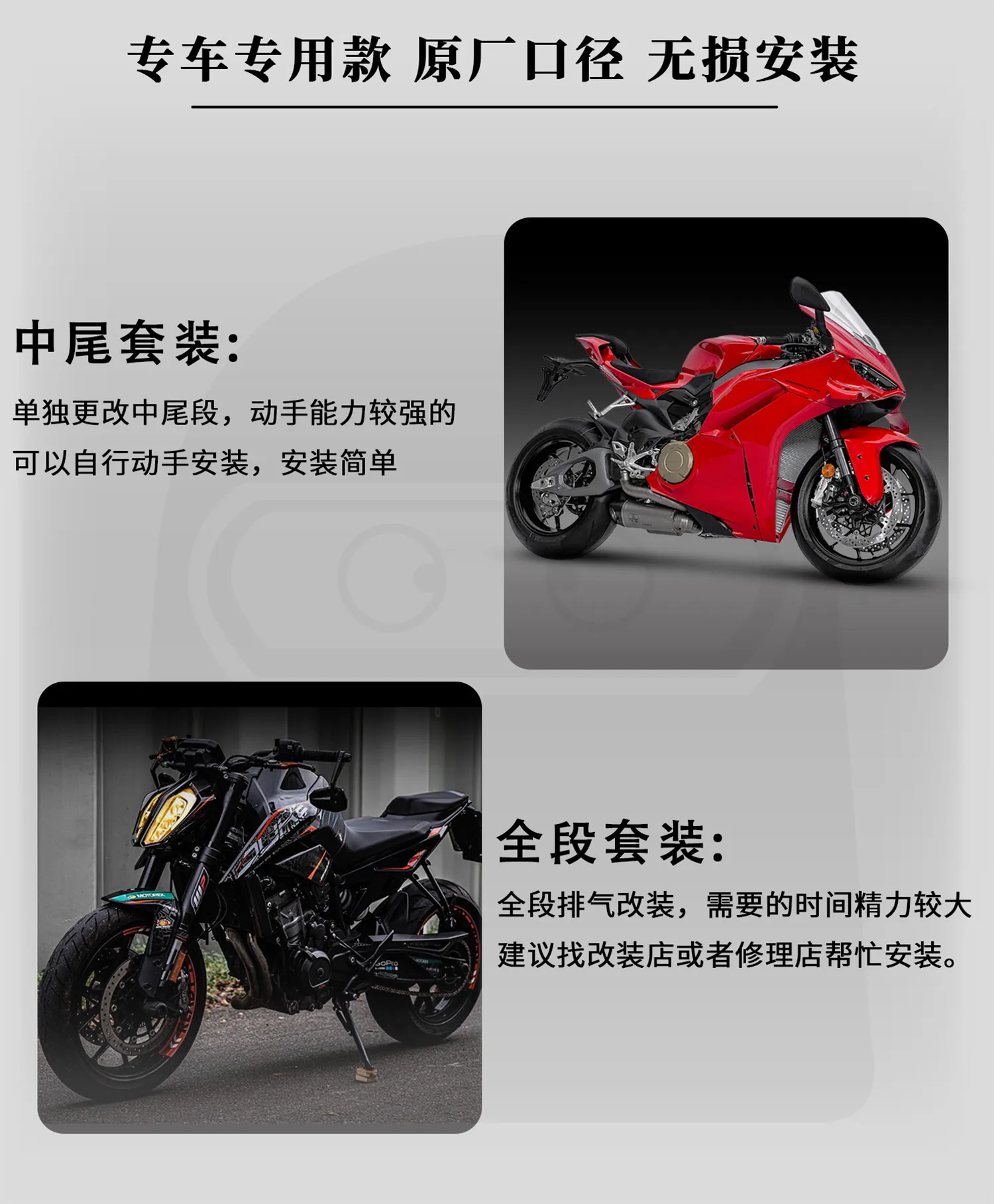 Método de instalación: usted mismo puede instalar el kit de la sección media (para aquellos con manos fuertes), mientras que se recomienda que un taller de modificación el kit de la sección completa lo instale para satisfacer diferentes necesidades de modificación;