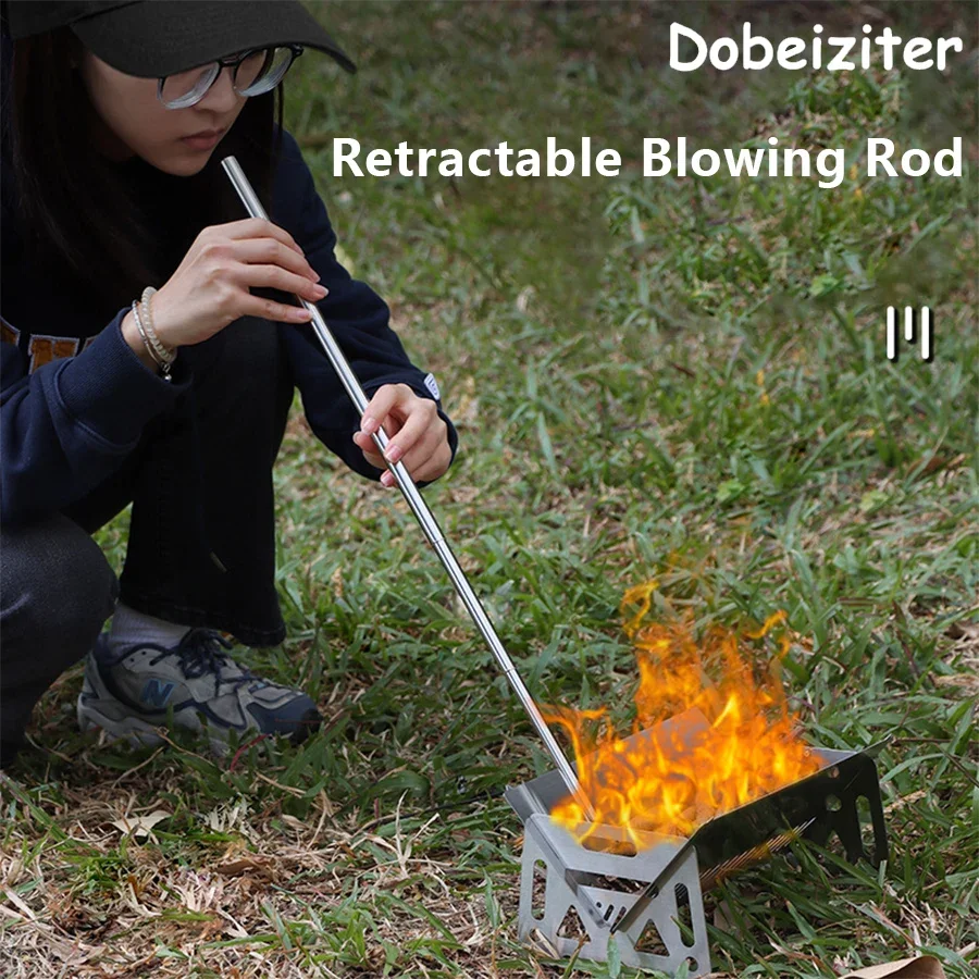 Tubo de soplado de acero inoxidable, fuelle de bolsillo, palo de soplado de aire plegable, herramienta de fuego para fogata, Bushcraft al aire libre, Camping, senderismo, cocina