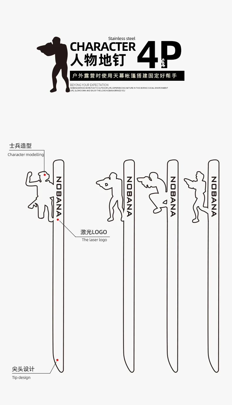 Uñas de figura para acampar al aire libre, 20Cm, 4 juegos de accesorios para tienda de campaña, clavos fijos a prueba de viento