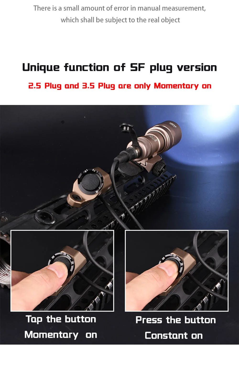 Este interruptor es compatible con SureFire M300 M600 DBAL-A2 PEQ15 2.5, lo que lo convierte en una adición versátil a los accesorios de su arma de fuego.