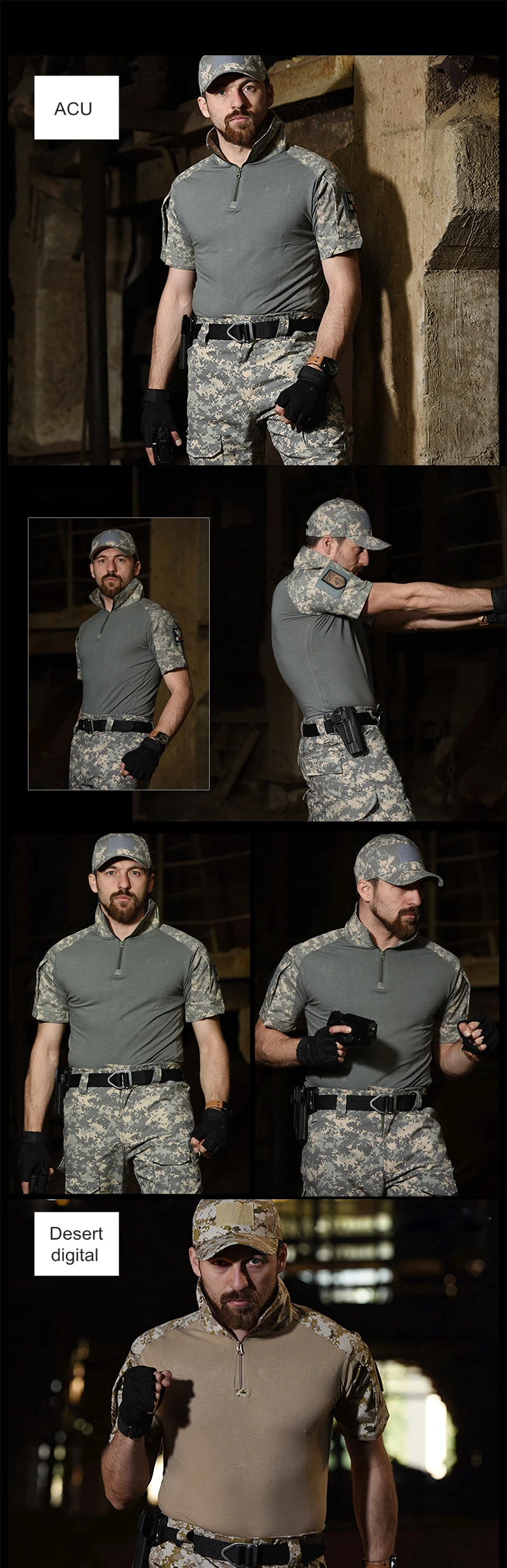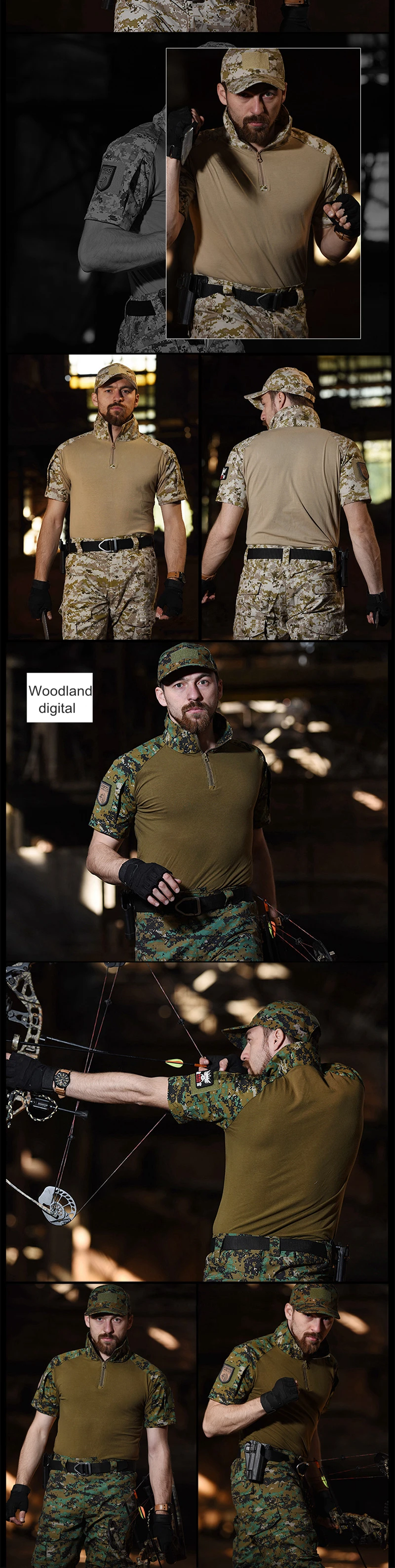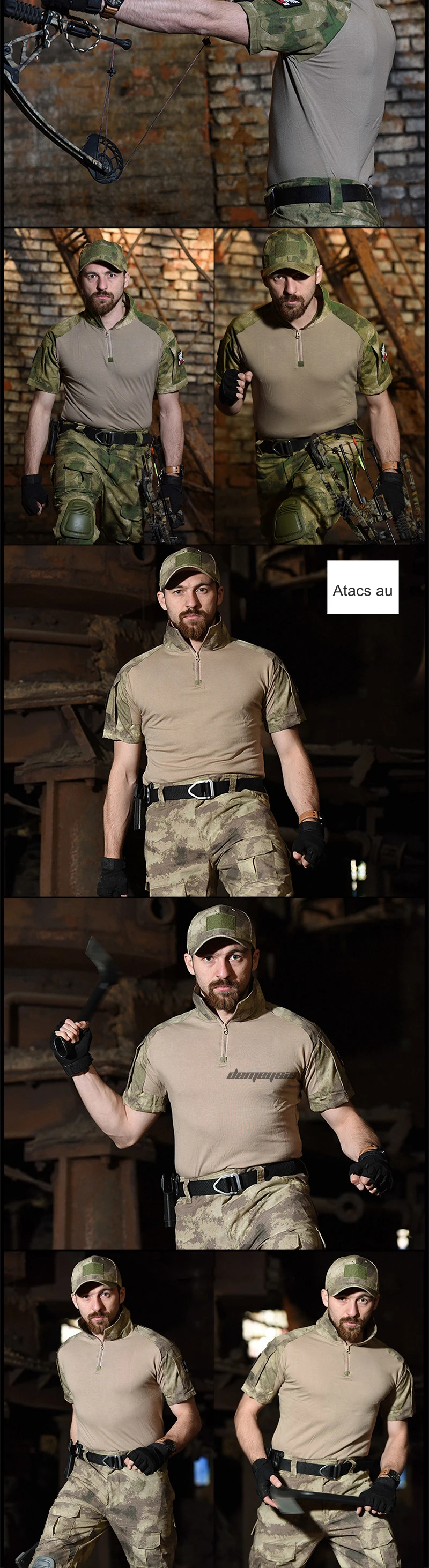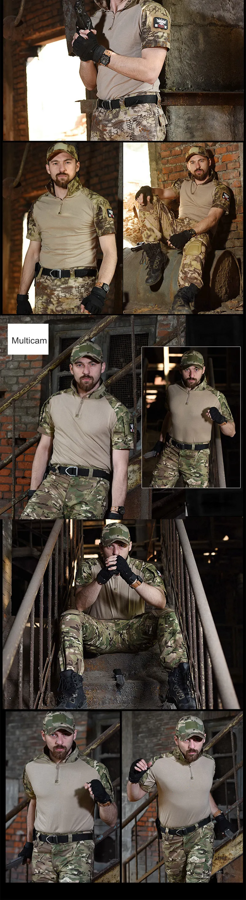 Uniforme de camuflaje Camisa táctica de verano Pantalones Rana Combate Ghillie Trajes Caza Camisa corta Pantalones Rodilleras Conjuntos