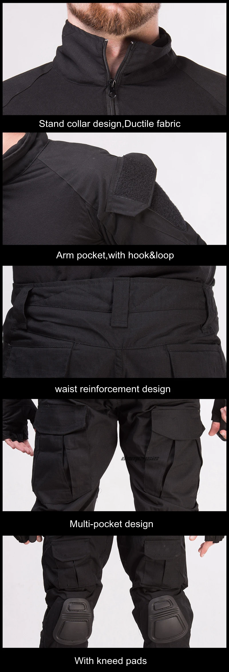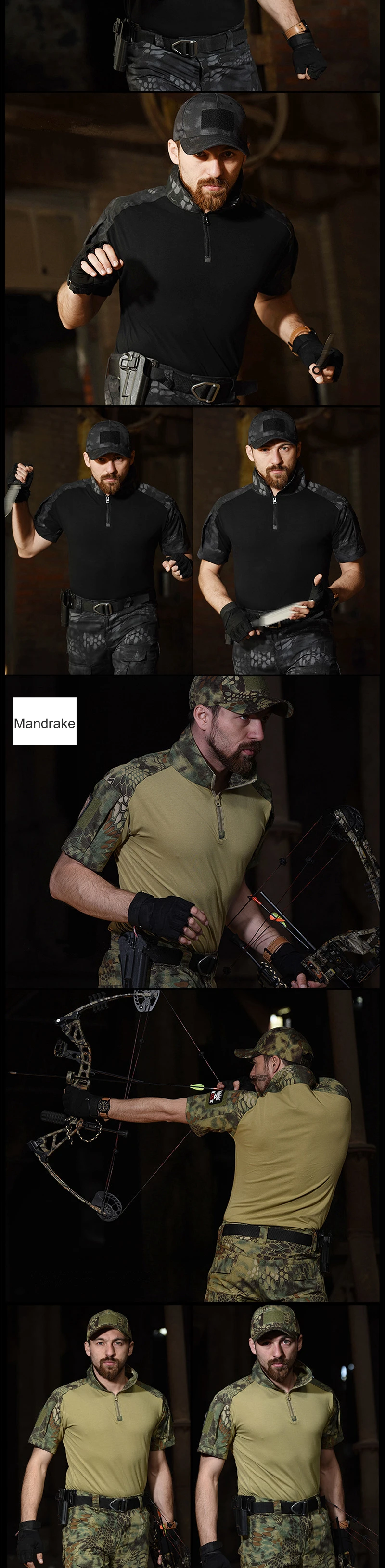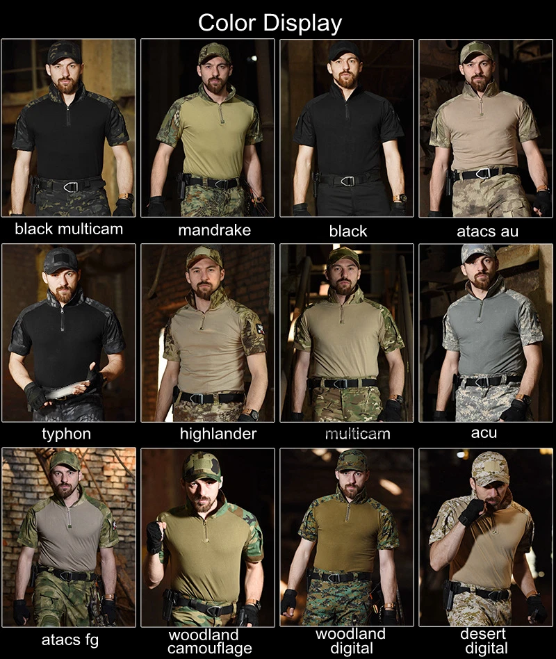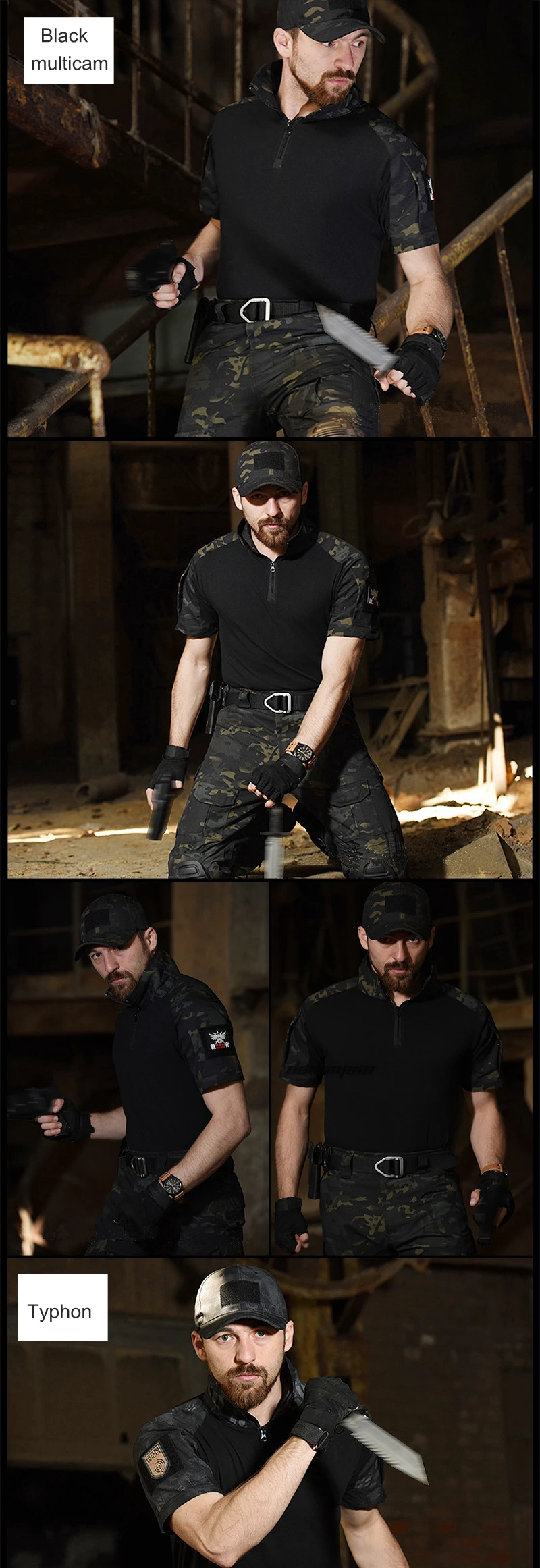 Uniforme de camuflaje Camisa táctica de verano Pantalones Rana Combate Ghillie Trajes Caza Camisa corta Pantalones Rodilleras Conjuntos