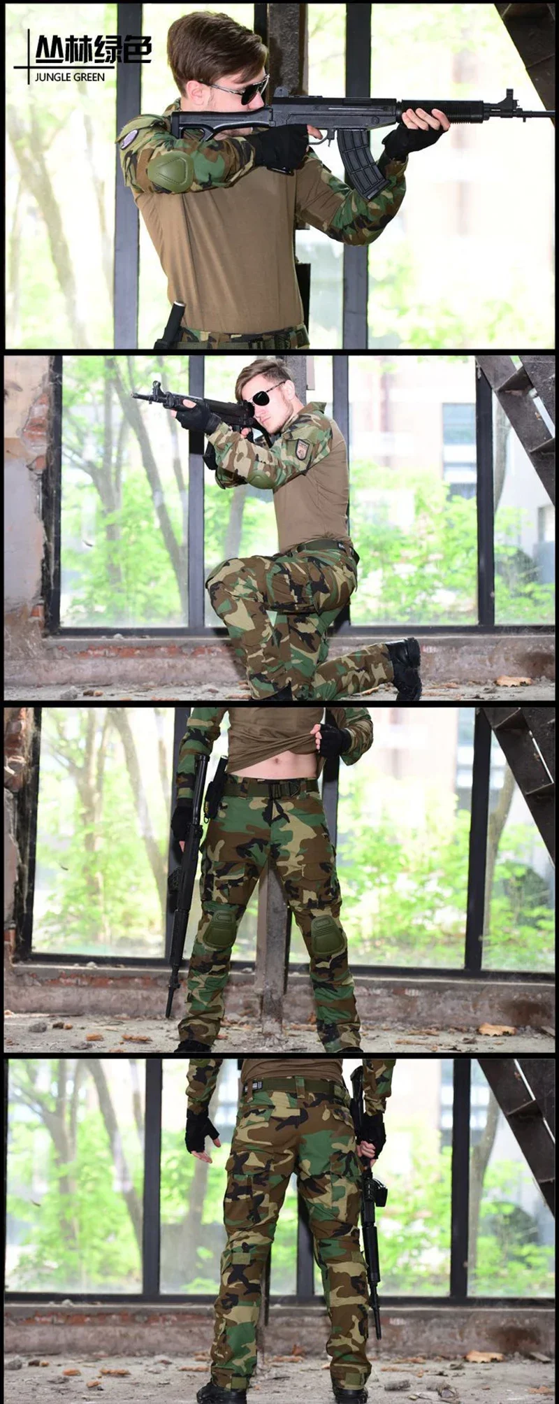 2.Cinta ajustable en la parte inferior y las rodillas de los pantalones.