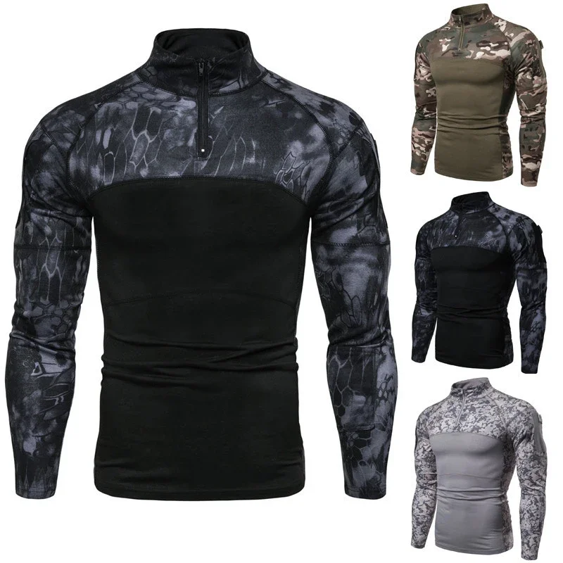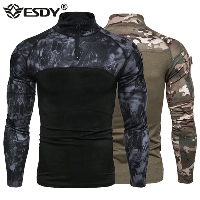 Uniforme militar de estilo estadounidense para hombre, camiseta de manga larga de camuflaje táctico para senderismo, camisetas ajustadas de algodón para hombre al aire libre