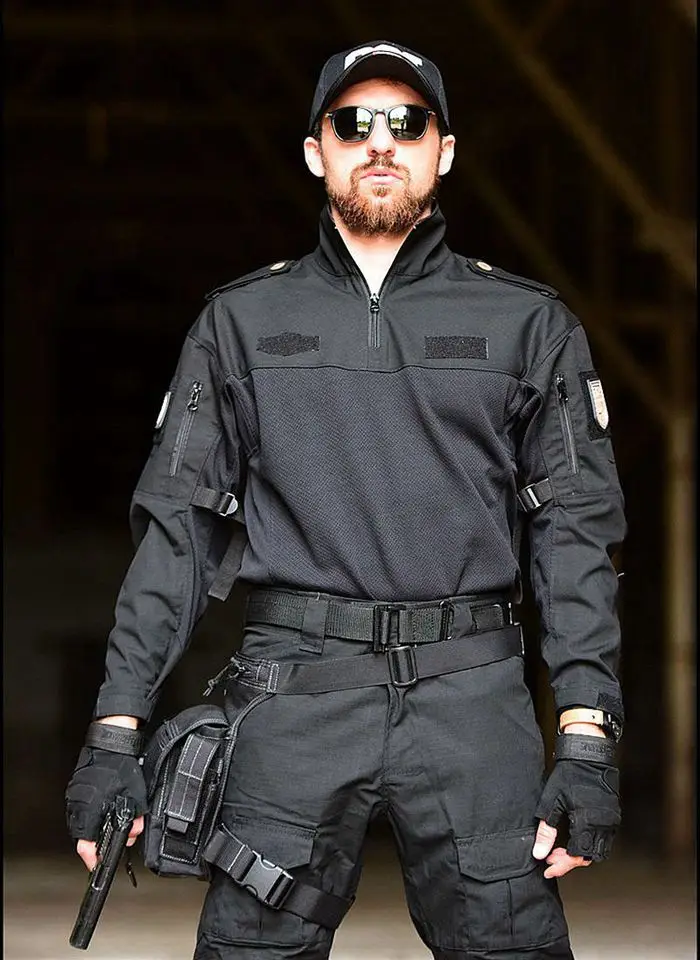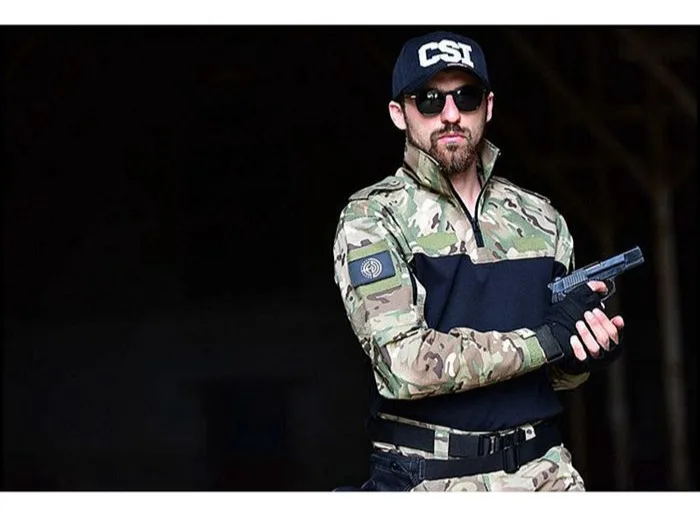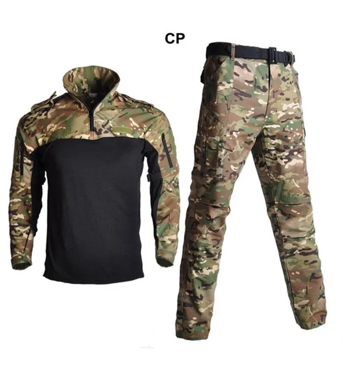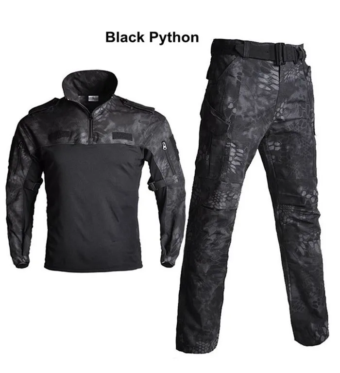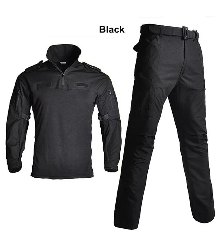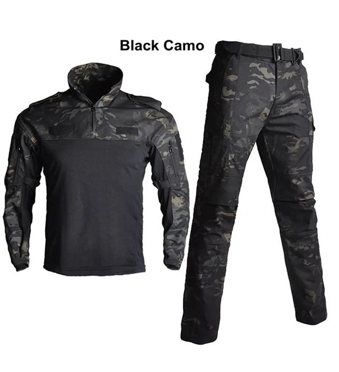 Tops de rana uniforme militar del ejército camuflaje traje de combate de manga larga Airsoft paintball conjunto de ropa camisas + Pantalones negro jungla