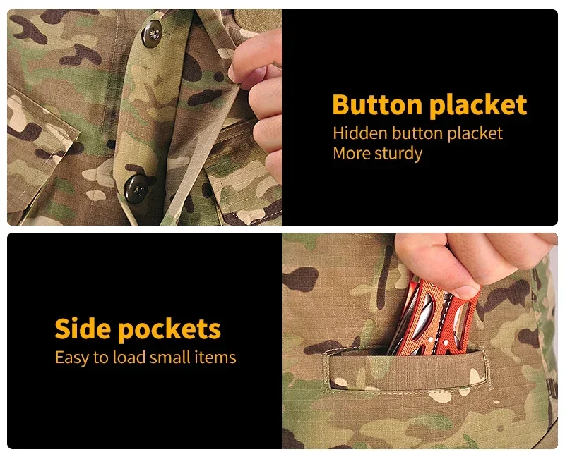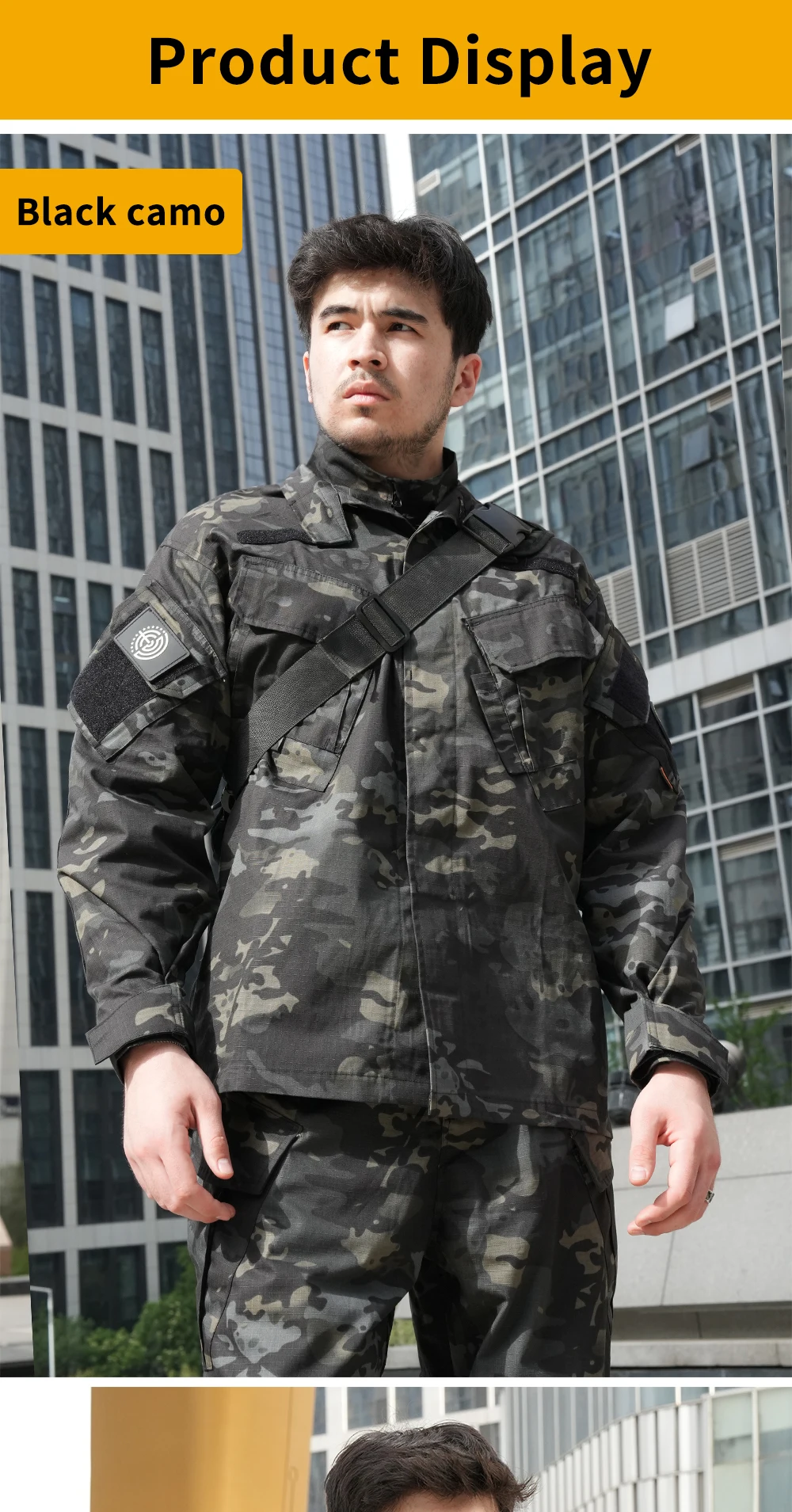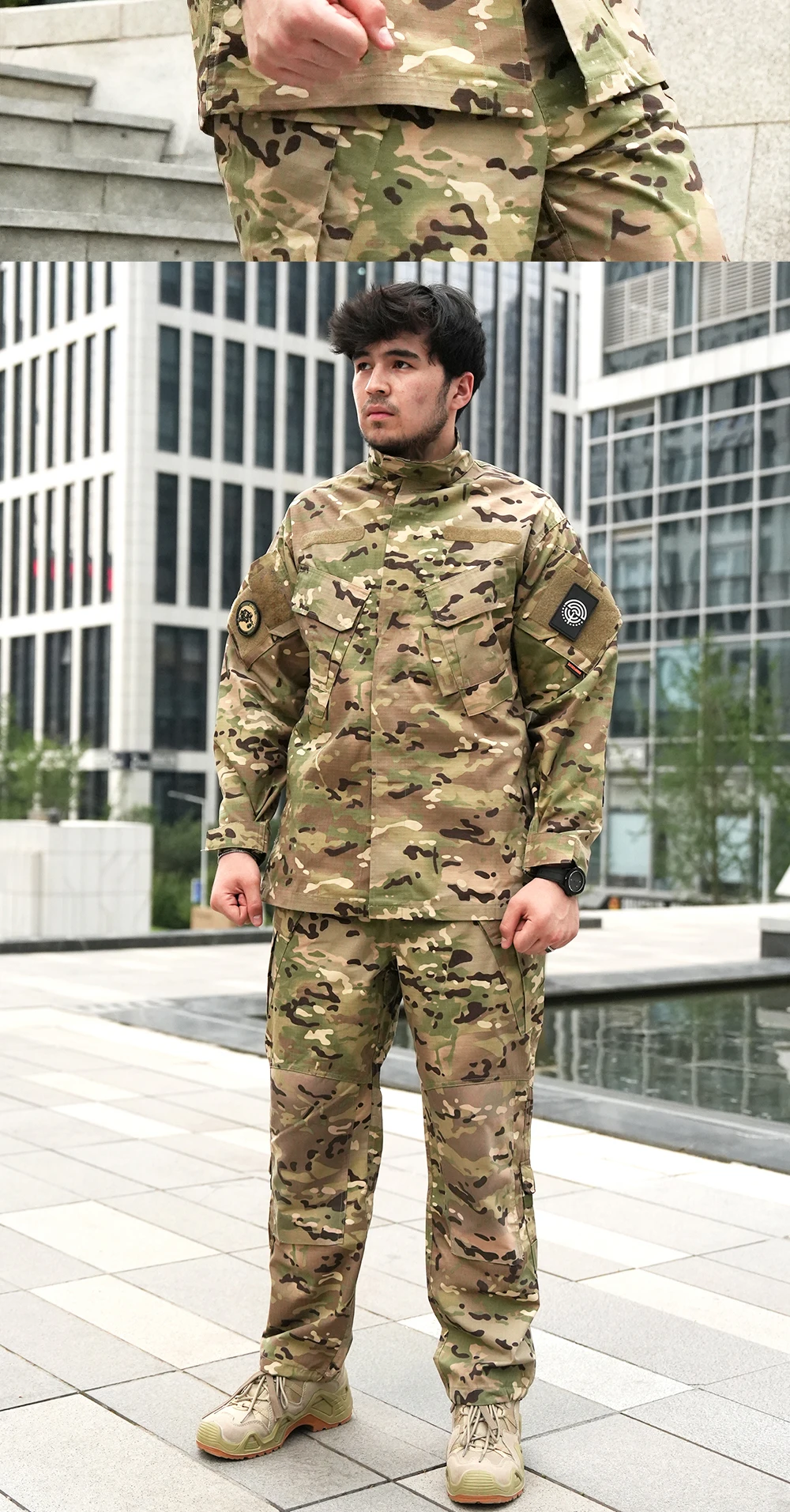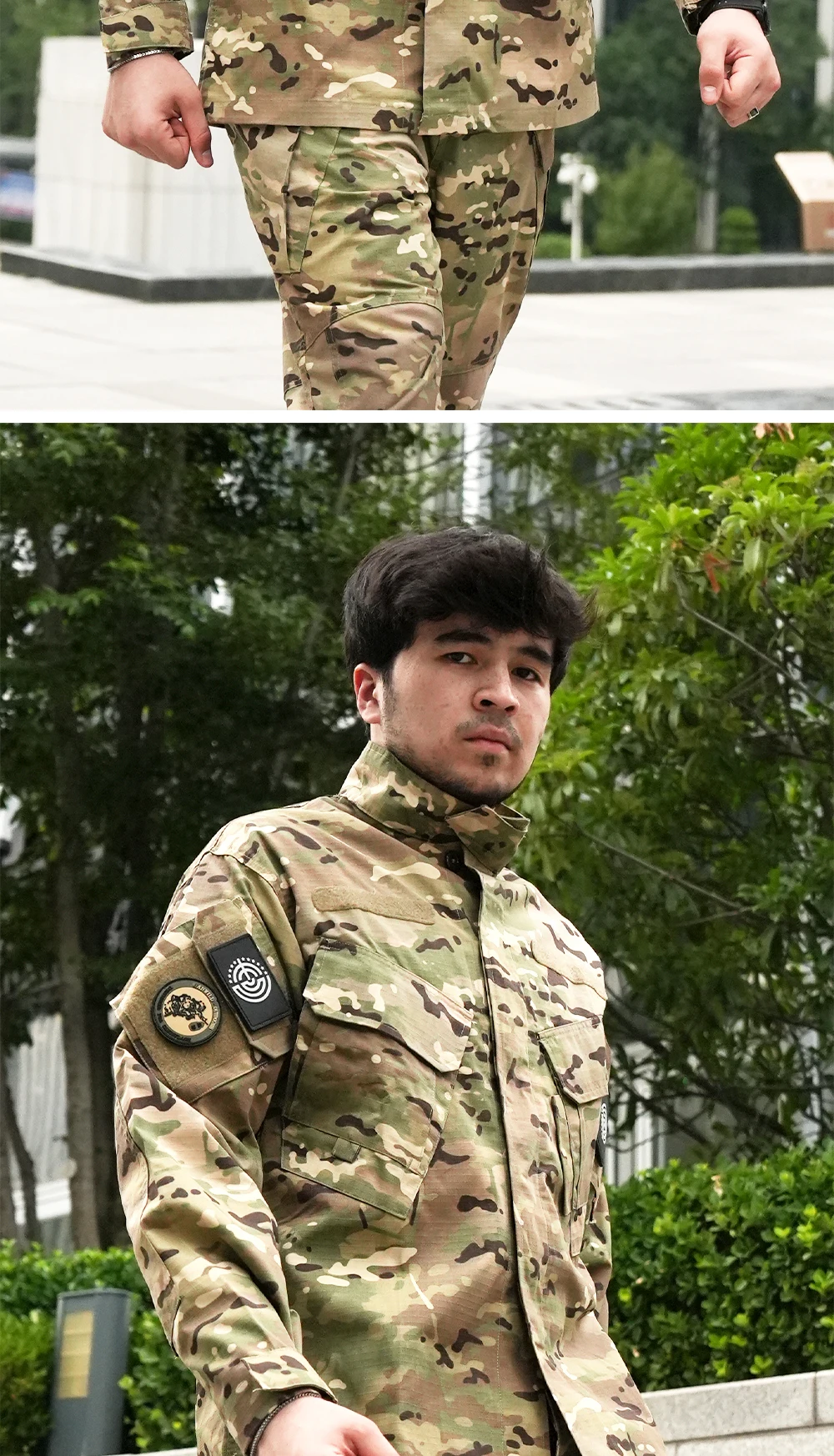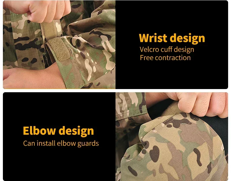 Uniforme de senderismo al aire libre para hombre, ropa de escalada, trajes de camuflaje tácticos con almohadillas, camisas de entrenamiento de caza resistentes al desgaste, conjuntos de pantalones Cargo