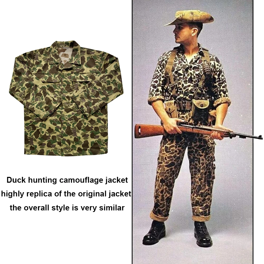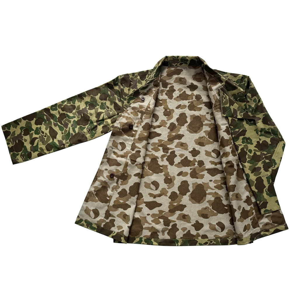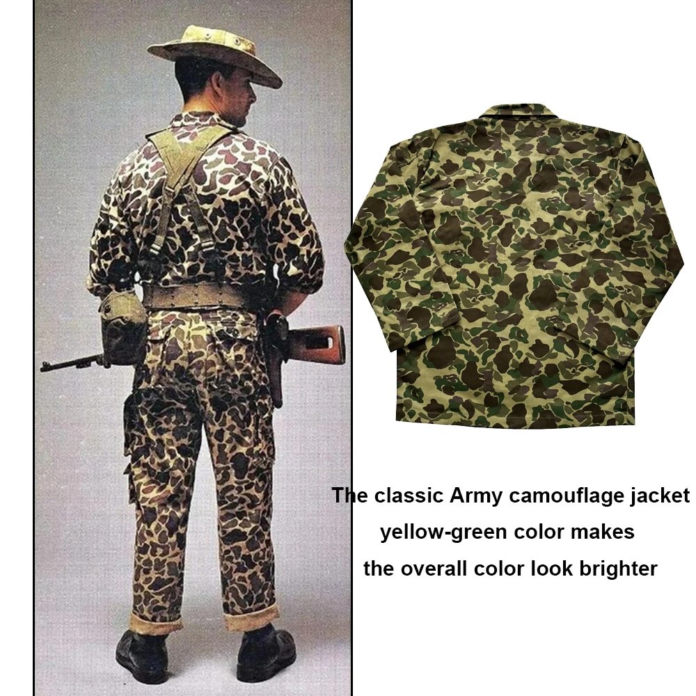 Uniforme de soldado estadounidense de la Segunda Guerra Mundial, abrigo de camuflaje de doble cara para caza de patos, uniforme de soldado Vintage HBT, chaqueta de camuflaje Vintage
