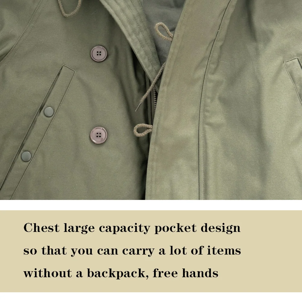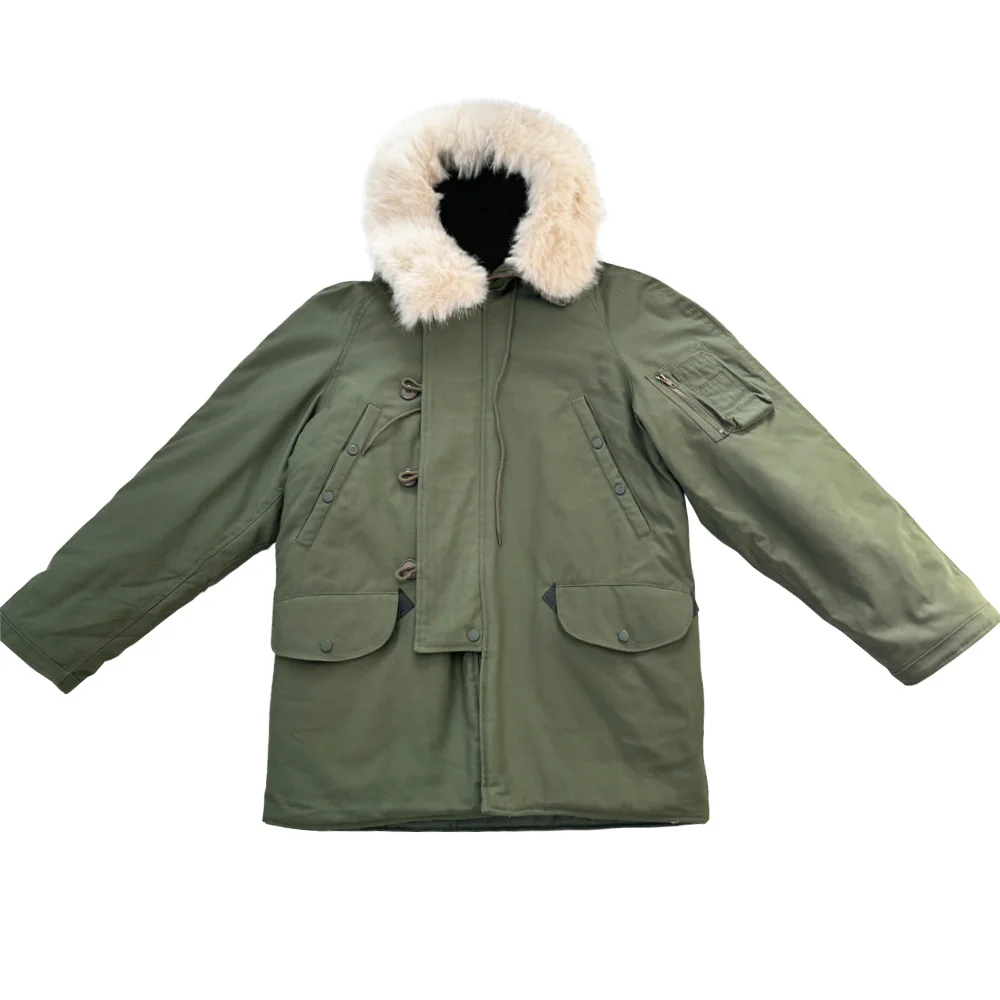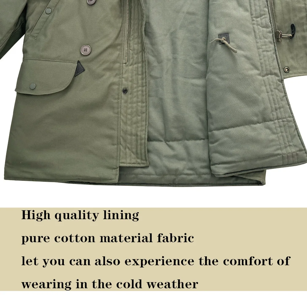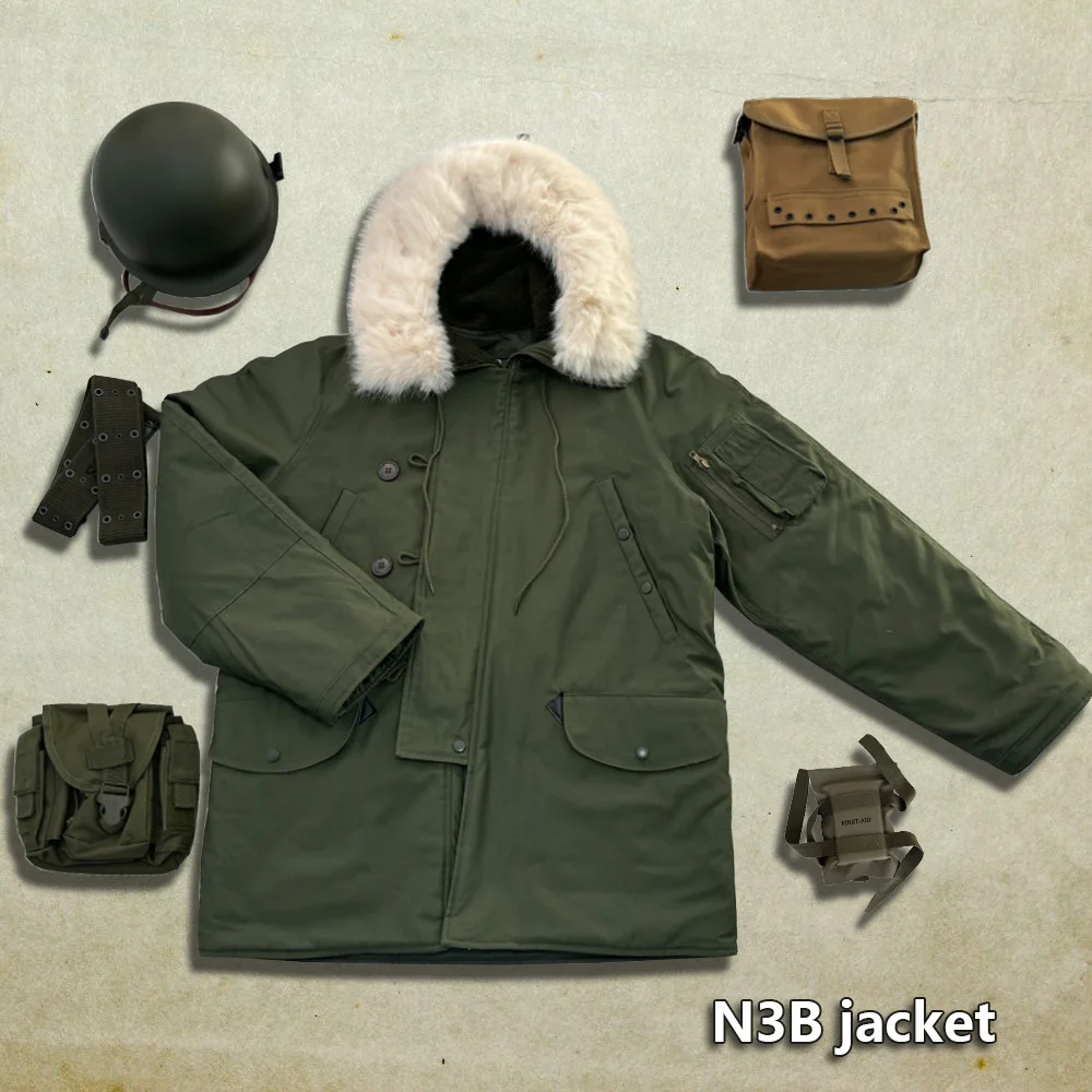 This jacket is a World War II American soldier jacket, the N3B company jacket. This jacket is made of cotton cloth and canvas. There are no pockets on the inside, but four pockets on the outside. The jacket has a drawstring at the waist and adjusts the easing of the jacket to make it better for your body. The jacket version is looser and more suitable for people who need casual training. The jacket is a World War II look with some later optimization to is more suitable for people today.