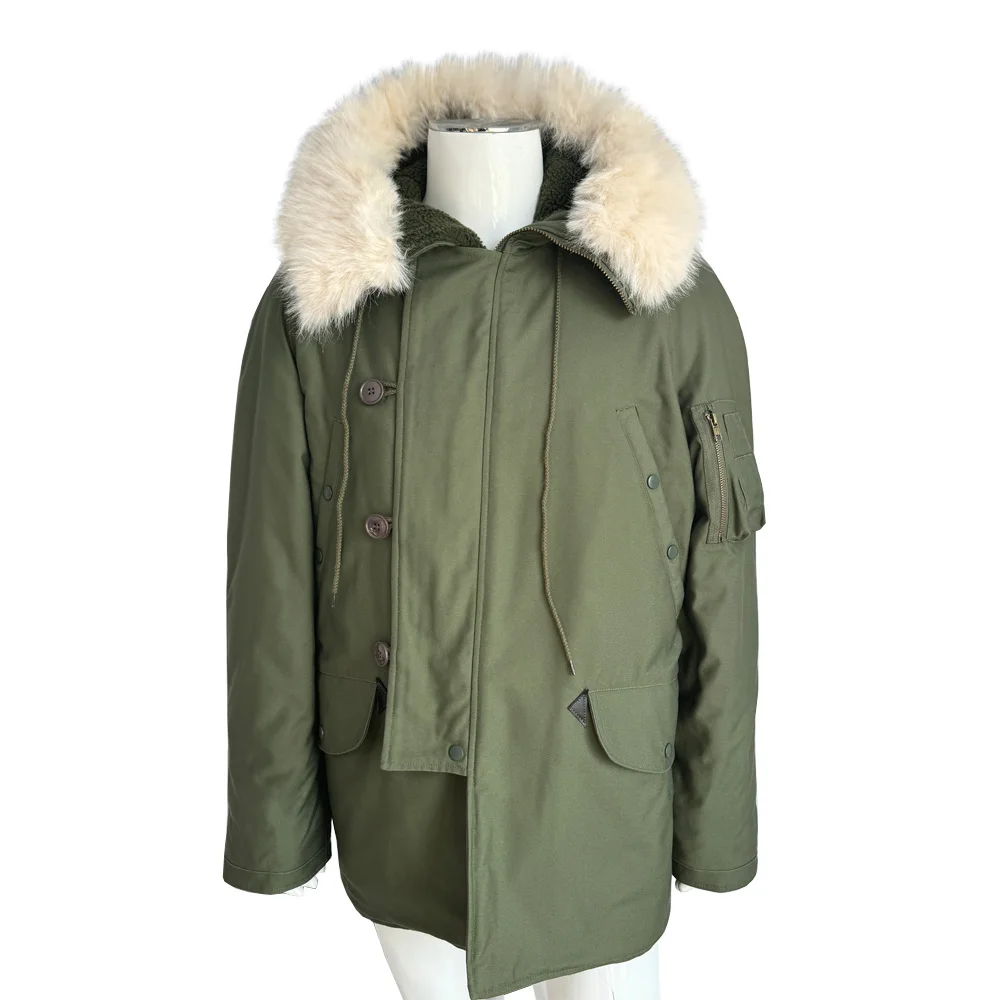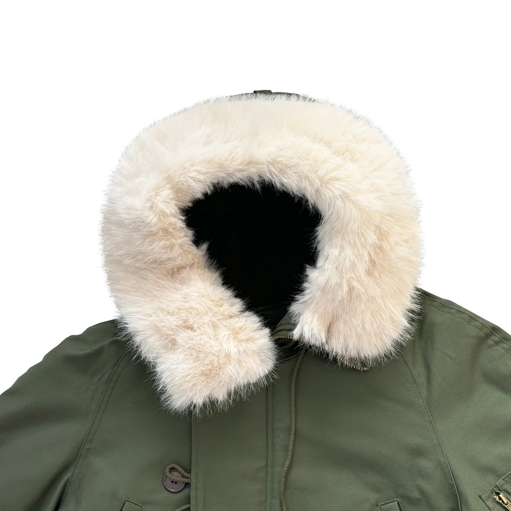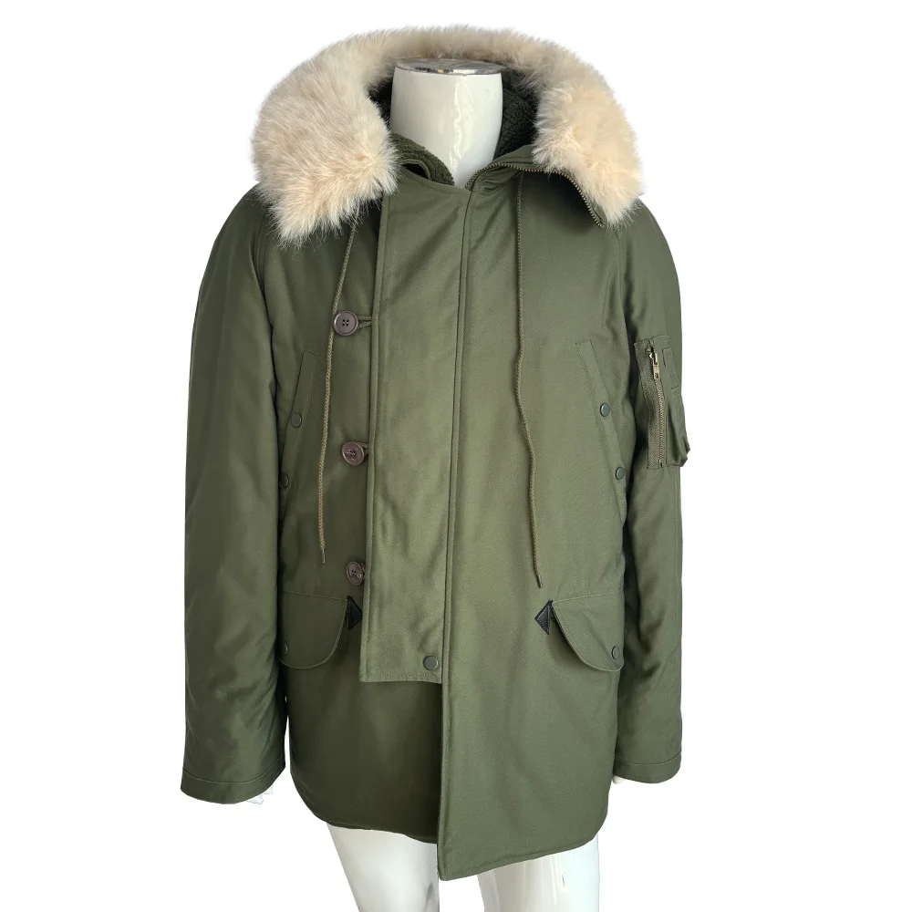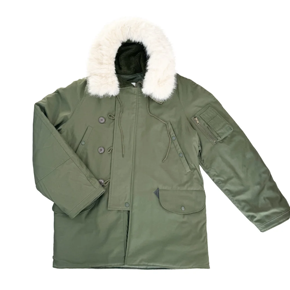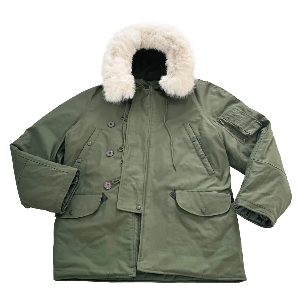 This jacket is a World War II American soldier jacket, the N3B company jacket. This jacket is made of cotton cloth and canvas. There are no pockets on the inside, but four pockets on the outside. The jacket has a drawstring at the waist and adjusts the easing of the jacket to make it better for your body. The jacket version is looser and more suitable for people who need casual training. The jacket is a World War II look with some later optimization to is more suitable for people today.